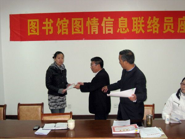 | 2011年12月1日下午,图书馆在五楼会议室召开了图情信息联络员座谈会暨2011年“读书月征文”和“优秀读者”获奖证书发放仪式,图书馆科以上干部、各系部图情信息联络员及获奖学生代表参加会议。图书馆副馆长储俊杰主持会议。 会上,储俊杰副馆长对2011年读书月活动进行了总结;宣读了《关于表彰2011年读书月征文获奖选手和优秀读者的通知》。馆领导为获奖同学颁发了获奖证书。 姚炎煌馆长代表图书馆对全体获奖同学表示祝贺,并表示在总结经验的基础上将改进今后读书月活动内容。他希望全体图情信息联络员进一步发挥系部师生与图书馆的信息桥梁作用,加强沟通,共同努力建设好学校的文献信息中心,并通过多种渠道和方式宣传介绍和有效利用学校的信息资源,为教学科研工作做好信息服务工作。 与会人员在座谈会上进行了广泛的沟通和交流,为图书馆的工作提出了建设性意见和建议。