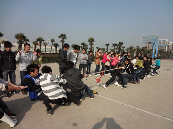 秋高气爽,丹桂飘香,为丰富大家的业余生活,11月21号上午,药学系2011级组织了欢乐激情的趣味运动会。 比赛开始,主持人发表了简短讲话,宣布运动会比赛正式开始,第一项拔河比赛顿时燃烧了整个赛场,同学们的加油助威声此起彼伏,络绎不绝;背对背运球、心心相印,你来比我来猜和赶篮球跑系列趣味比赛让人笑声不断,掌声、喝彩声交相呼应;自行车慢骑,选手们的平衡力,掌握度,定力在此一一展现;多人多足和仙人指路比赛更是考验参赛选手的团结与合作能力,展现了选手的激情与付出。比赛期间,不论选手名次如何,他们都会得到观众的赞美和鼓励。 本次趣味运动会不仅体现了药学系大一新生积极向上的青春风貌,而且让我们体会到他们永不认输的精神,有力的号子声为整个校园增添了色彩,也在无形中增进了各个专业的了解,拉近了各专业间的距离,增厚了同学们的友谊。为同学们创造了一个学习和生活的和谐氛围。