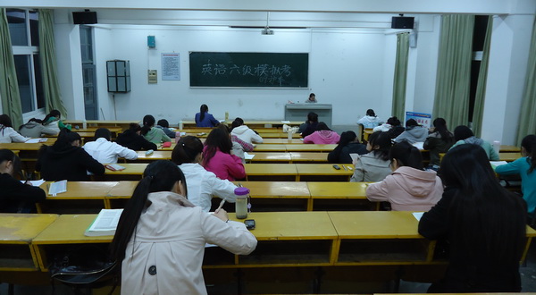 护理学系2009级本科为了迎接12月份的六级考试,帮助同学们创造良好的考场环境,使同学们更清楚地认识自己的不足,于11月13日晚举行了英语六级模拟考试活动。 同学们按照国家英语六级考试规则进入考场,按照考试座位就坐,准备考试。考试过程中,同学们完全沉浸在考场的氛围中,监考人员按照六级考试标准定时收答题卡一和答题卡二,同学们也积极遵守考试规则。