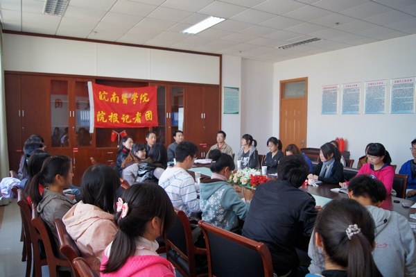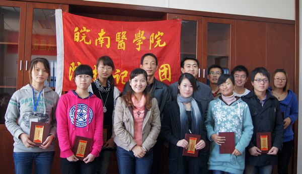 2011年10月31日中午,宣传部在统战活动室召开校报记者团年度总结表彰会议。宣传(统战)部负责人陈抗震、应斌和宣传部全体工作人员、校报记者团全体成员参加会议。会议由校报编辑部主任任苔蓉主持。 会议总结了2010年10月至2011年校报记者团工作,介绍了2011年记者团招新情况。一年来,在部门领导的支持和有关部门的协助下,校报记者团全体成员凝心聚力、团结协作、扎实工作,在记者团建设和校园新闻报道等方面取得了明显进步。组织开展了两次校外采风活动,并对采风摄影作品和文章进行评比;举办摄影知识讲座、“感悟历史 拥抱自然”摄影展、芜湖市高校记者团交流会等活动。2011年9月,经过层层选拔,通过笔试、面试,20名新生加入到校报记者团。 会议对年度优秀记者进行了表彰,宣传(统战)部副部长陈抗震宣读了表彰文件,并向获得表彰的同学颁发获奖证书。经评比,王涛、钟林霞、梁巧凤、彭承俊等四名同学获“优秀团干”称号,王雨、荀玉月、蔡瑞婷、厉歆然等四名同学获“优秀记者”称号。 宣传(统战)部副部长应斌讲话。他对新记者的加入表示欢迎,向获奖同学表示祝贺,同时向记者团成员们提出了两点希望:一要坚持正确的舆论导向,展示良好的校风校貌,在校园文化建设中贡献才智和力量;二要坚持“三贴近”原则,关注生活、关注师生、关注校园,挖掘亮点,宣传典型,架构师生交流的桥梁。 全体记者团同学面对团旗庄严宣誓,表示要珍惜岗位,服务师生,要用事实说话,用镜头去捕捉精彩的瞬间,用文字去记录新闻故事,用热情谱写生命的弦音。 会上,校报记者团新、老成员就如何进一步提高新闻写作水平、加强校报记者团建设进行了交流。