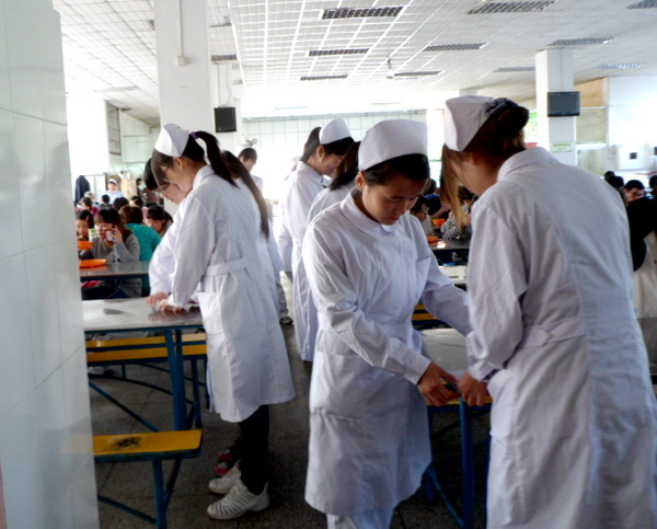 为提高广大同学文明就餐的意识,营造良好的就餐环境,2011年10月23日中午,护理学系2009级本科组织学生志愿者在北校区食堂开展了 “文明礼貌,秩序就餐”的宣传教育活动。该活动旨在通过排队就餐这一做法,提醒同学们注意校园文明,号召大家团结一致,同心协力树校园文明新风。