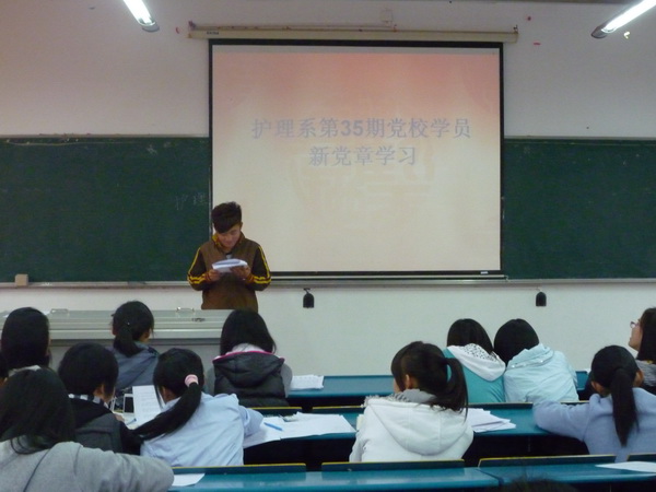 为端正新生入党积极分子的入党动机,加强本期党校学员的党性修养,护理学系第七党支部于10月24日在西教202教室组织入党积极分子学习党章。50名入党积极分子参加了会议。