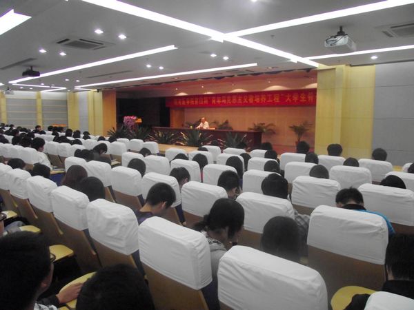 为更好地组织引导广大青年团员和团干部认真学习、深刻领会、坚持贯彻胡总书记七一讲话精神,2011年10月13日晚,校团委邀请关工委副主任席品山在图书馆三楼学术报告厅开展了专题讲座。我校第四期“青年马克思主义者培养工程”大学生骨干培训班学参加,讲座由校团委副书记许国飞主持。