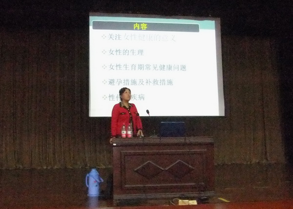 为进一步加强对女生女性生理健康知识的教育,提高女生自我保护意识。2011年10月14日下午,护理学系于在大学生活动中心举办女生健康知识讲座。本次讲座分两场举行,2010级和2011级专科所有女生参加,讲座由弋矶山医院妇产科副主任护师方玟老师主讲。