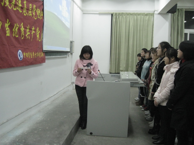 此次活动由两部分组成,首先在学生党员代表方媛媛的带领下,全体预备党员进行了一次庄严而神圣的“承诺”宣誓活动,承诺积极努力,争做一名优秀的共产党员。在铿锵有力的承诺声中,学生预备党员们不仅进一步坚定了共产主义信念,也深刻认识到了作为一名共产党员的神圣使命;接着,全体预备党员观看了“优秀共产党员沈浩先进事迹”报告会的视频,通过视频学习,全体预备党员更加深入的领会了优秀共产党人的风采,进一步明确今后学习和努力的方向。
