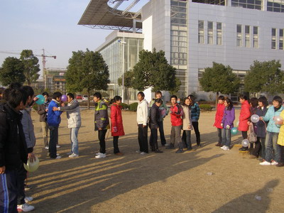 12月31日下午,药学系09药学9、10班为了增进同学们的友谊,舒缓紧张复习的心情,同时开展体育活动提高同学们的身体素质,在篮球场费旁的器材区共同开展了趣味体育运动。