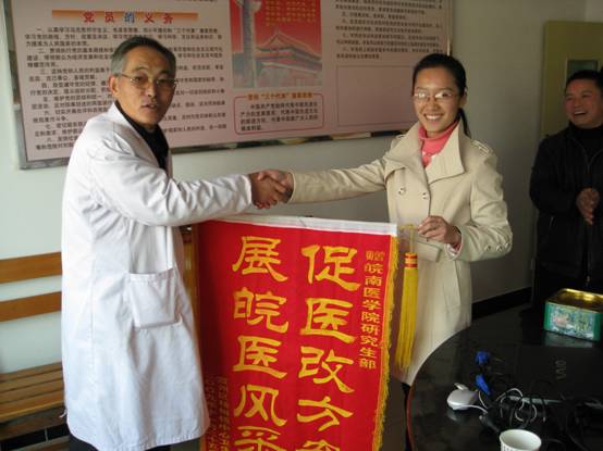 杨柳中心卫生院院长赠送锦旗给研究生部