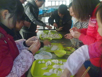今年的雪来得特别早,天气突然间冷了很多,但是这也丝毫没有影响同学们的活动热情。班长和团支书早早的向学校的后勤处递交了申请很快办好了手续,和食堂联系过之后,便开始了这次活动。同学们洗菜的洗菜,剁陷的剁陷,大家分工明确,忙的不亦乐乎。准备工作一结束,全班同学立刻投入包饺子的队伍。很多同学是第一次包,他们请教有经验的同学,大家交流经验,互相学习,气氛十分融洽。最后吃饺子的时候,大家品尝着自己的劳动果实,别有一番滋味。本次活动增强班级凝聚力,加强了同学们之间的了解与沟通。(胡沈辰 文/摄 陈阳 凤焱/审) |