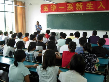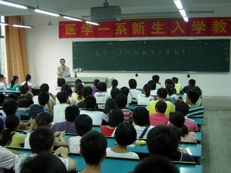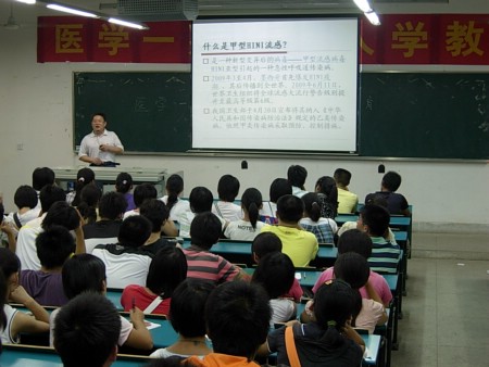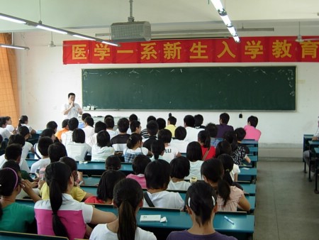 9月7日,在教务处的大力协助下,医学一系临床医学专业900多名新生的入学教育,如期在西教学楼的7个教室同时进行,为做好此次新生入学教育,医学一系采取了一个主会场,其他教室同步声像传播的方式。