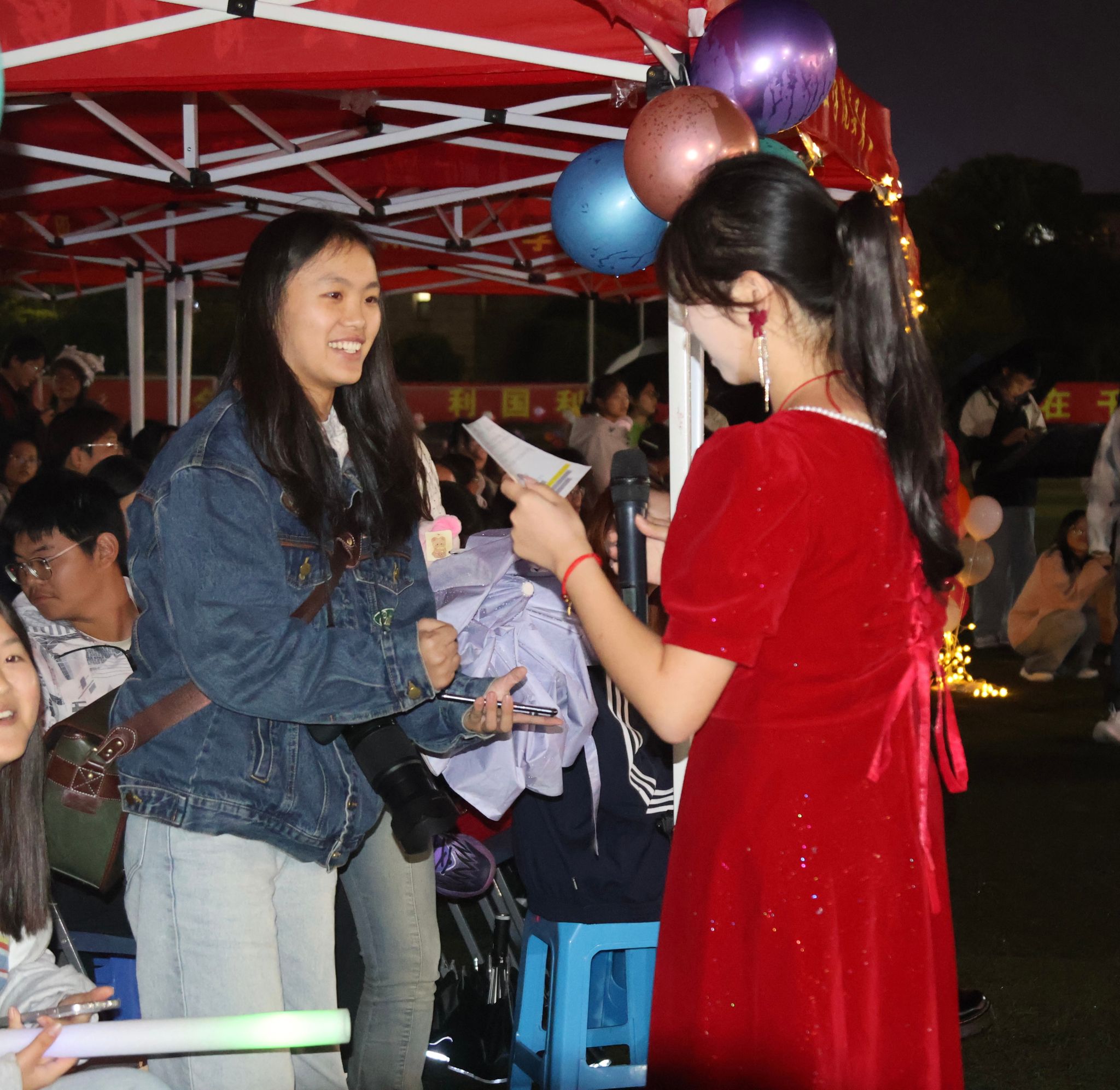 晚会穿插的互动环节更是将气氛推向新高。“听歌识曲”环节中,现场观众争相举手抢答,跟着旋律哼唱经典曲目;“正话反做”游戏考验反应速度,台上参与者手忙脚乱的模样惹得全场大笑,获胜者收获精美礼品,未得奖的同学也在欢笑中感受活动乐趣。虽然天公不作美,但依然有不少同学来到现场。2025级新生李沐阳说:“从招新展区的社团体验到晚会的精彩表演,每一刻都让我感受到皖医的活力!我已经加入了演讲与口才协会,希望在这里锻炼自己,结识更多志同道合的朋友。”同为新生的张雅琪则表示:“光影秀和舞蹈表演太惊艳了,互动游戏也很有趣,现在我对大学生活充满期待,想多参与社团活动丰富自己。”