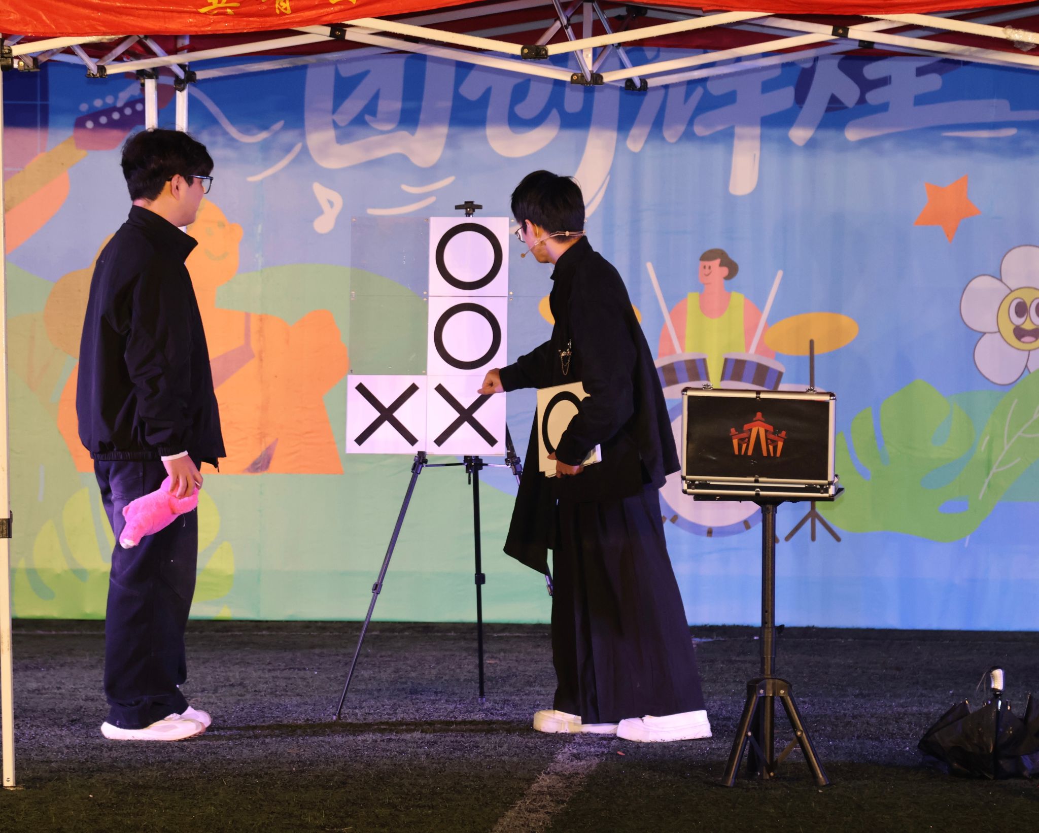 活动现场热闹非凡,招新展区与晚会舞台相映成趣。招新环节中,42个社团按思想政治类、自律互助类、创新创业类、文化体育类、学术科技类、志愿公益类、兴趣爱好类七大类别有序陈列,五彩斑斓的主题海报、创意十足的社团周边、特色鲜明的互动体验吸引大批新生驻足。有的社团通过现场才艺展演展现核心魅力,有的以趣味小游戏拉近与新生距离,还有的结合专业特色设置体验环节,让新生在互动中直观感受社团文化,快速找到兴趣归属。新生同学们纷纷手持活动预热的集章卡奔赴社团。