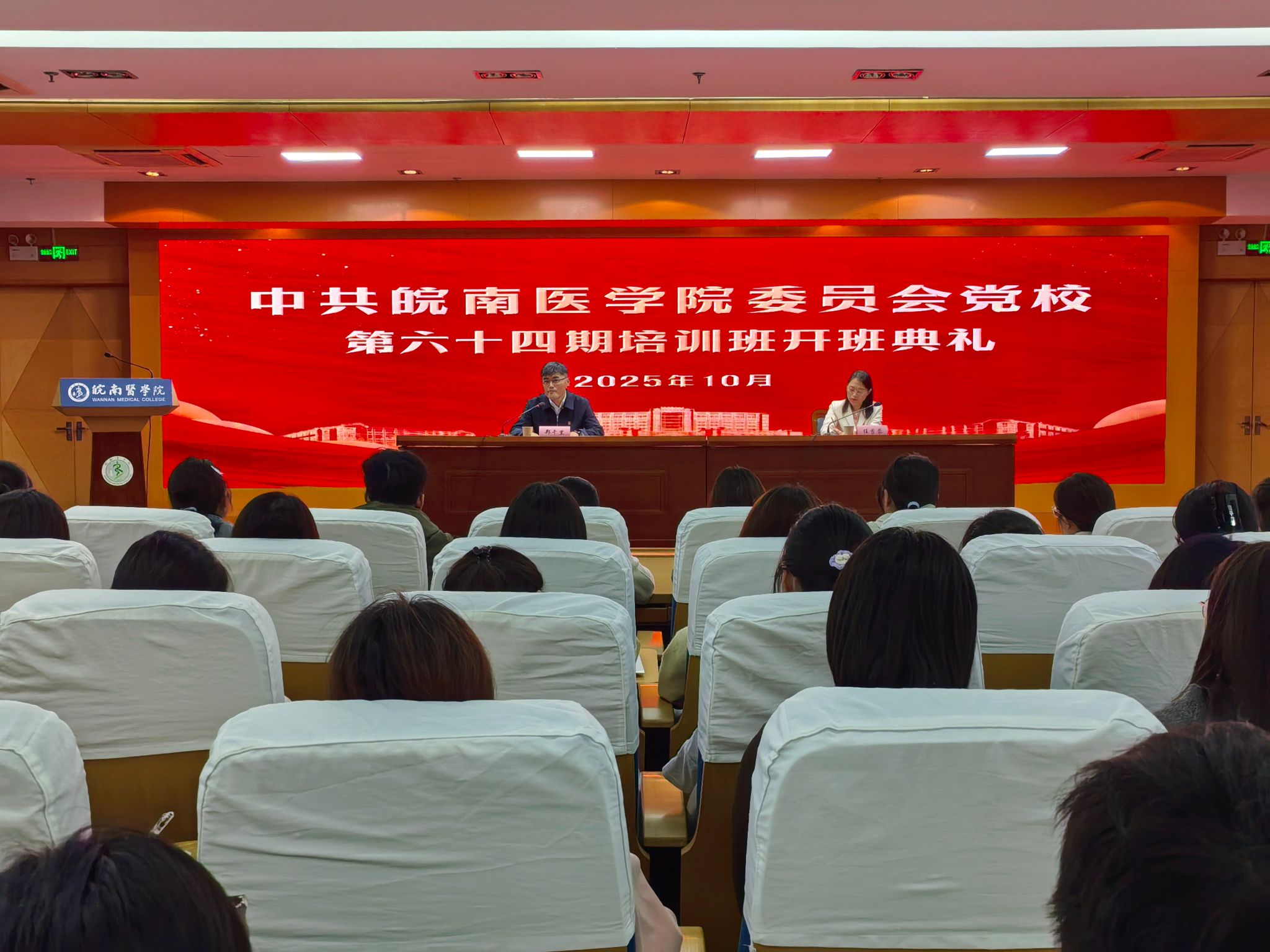 10月19日上午,中共皖南医学院委员会党校第六十四期入党积极分子和发展对象培训班开班式在滨江校区(北区)图书馆三楼学术报告厅举行。组织部常务副部长郑千里参加开班式并作动员讲话,组织部副部长、党校常务副校长任苔蓉主持开班式。