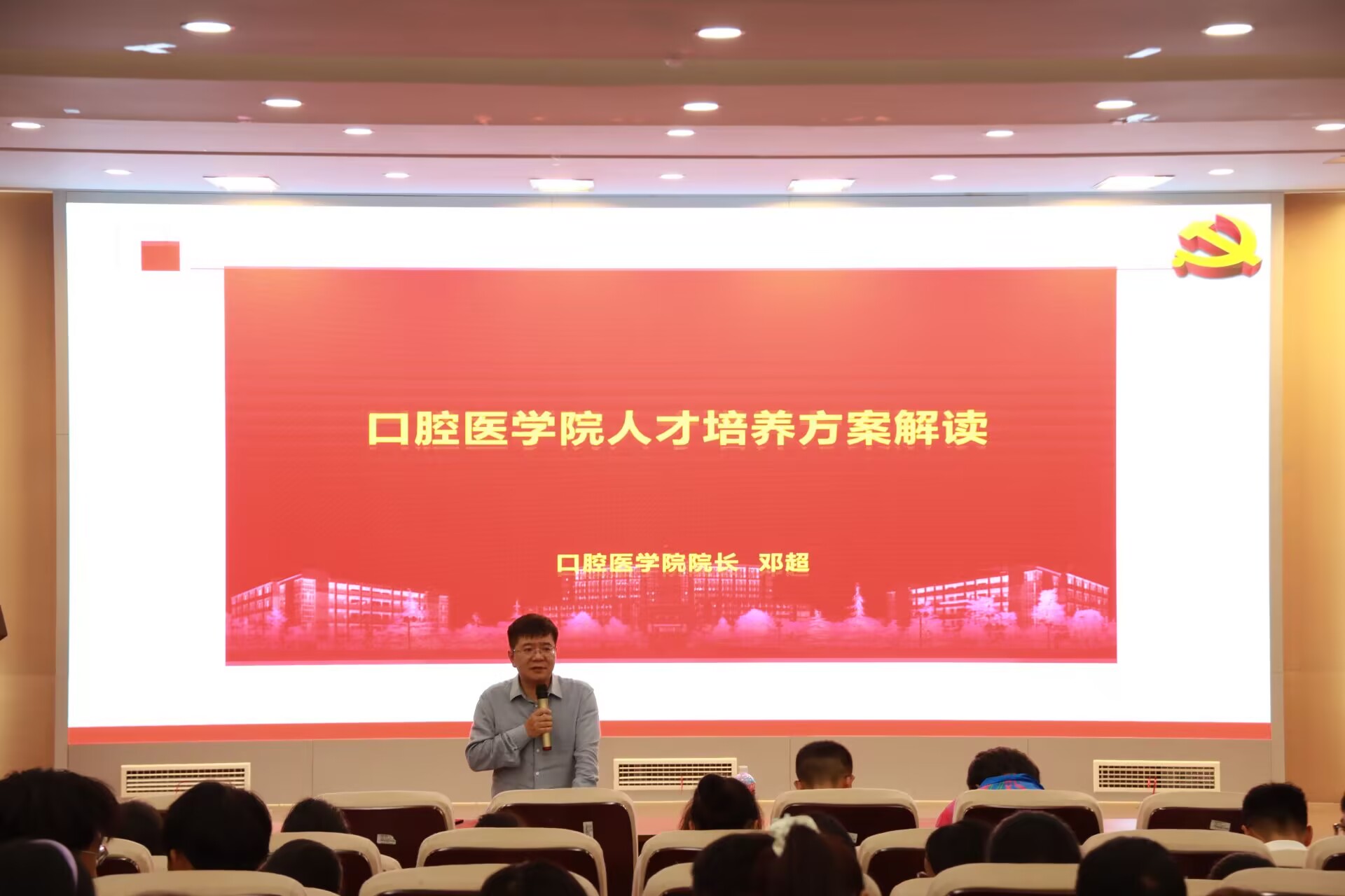 为帮助2025级新生尽快融入大学生活,明确未来职业发展方向,牢固树立规矩意识,近日,口腔医学院在学院五楼会议室开展2025级口腔医学、口腔医学技术专业新生入学教育。学院党委书记柴琳、院长邓超、党委副书记张晋艳、新生辅导员吴义红及2025级全体新生参加会议。