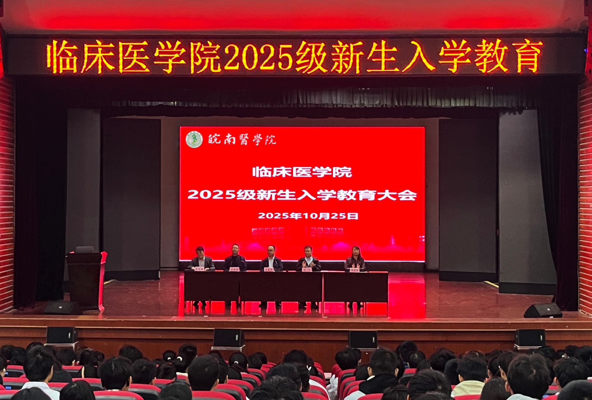 为帮助2025级新生快速适应大学生活,明确学业发展方向,树立正确成长观念,10月25日,临床医学院在大学生活动中心举办2025级新生入学教育大会。临床医学院党委书记方基勇、院长许力、副院长陈祥攀、党委副书记陶香香,2025级辅导员以及全体新生参加会议。会议由辅导员李文祥主持。