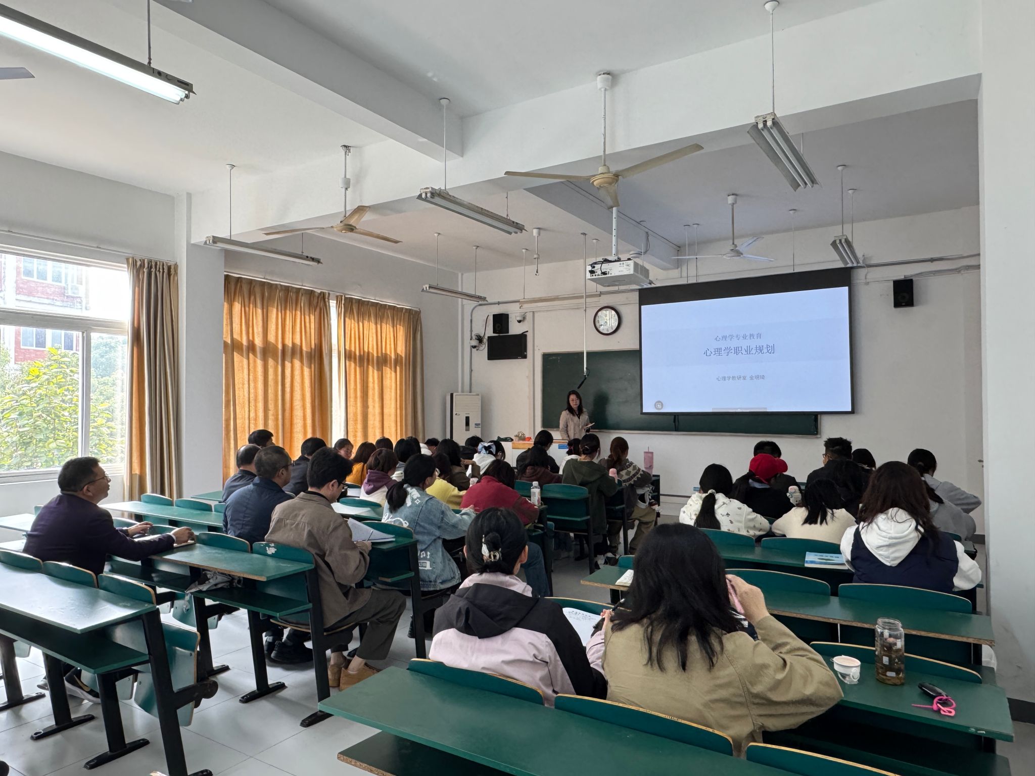 会议之前,与会人员深入2025级应用心理学专业课堂,认真聆听了心理学教研室金明琦老师讲授的《心理学职业规划》相关内容,并查看学生课堂学习情况。