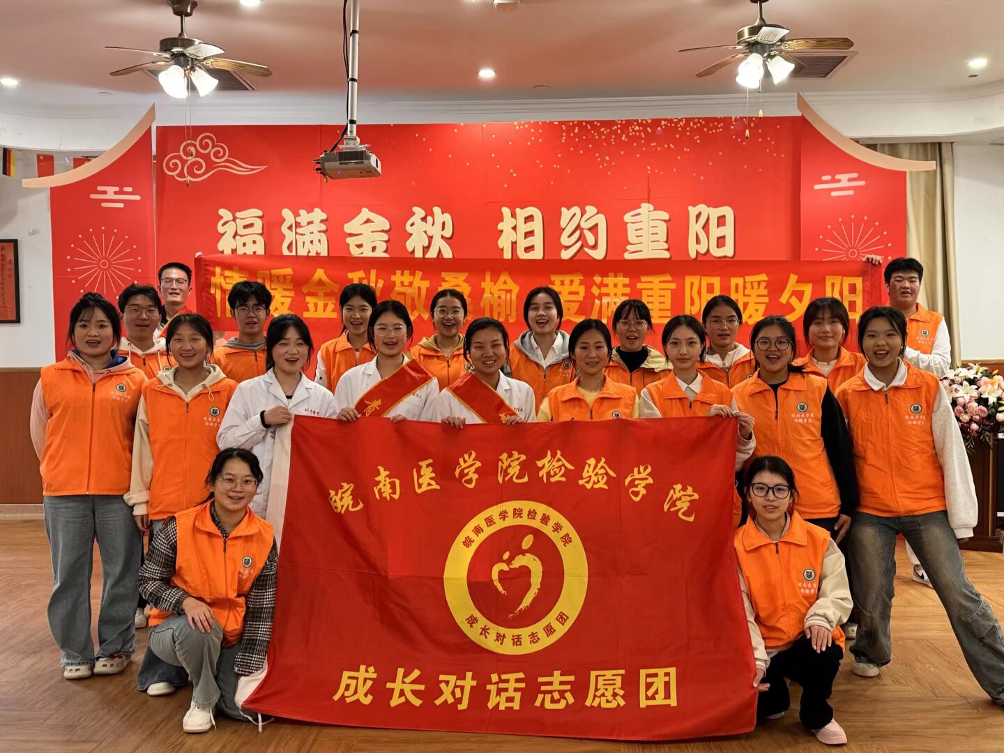 金秋送爽,重阳寄情。农历九月初九重阳节是中华民族传统的敬老节日,蕴含着“尊老、敬老、爱老、助老”的深厚文化内涵。为传承中华传统美德,弘扬新时代文明风尚,近日,检验学院成长对话志愿团带领青年志愿者们走进蕾娜范海螺颐养院,开展“情暖金秋敬桑榆 爱满重阳暖夕阳”志愿服务活动。活动融合义诊服务、传统文化体验、养生宣讲等多元形式,为老人们送去健康关怀与节日欢乐,进一步增强社会对老年群体的关注,营造敬老爱老的良好氛围。