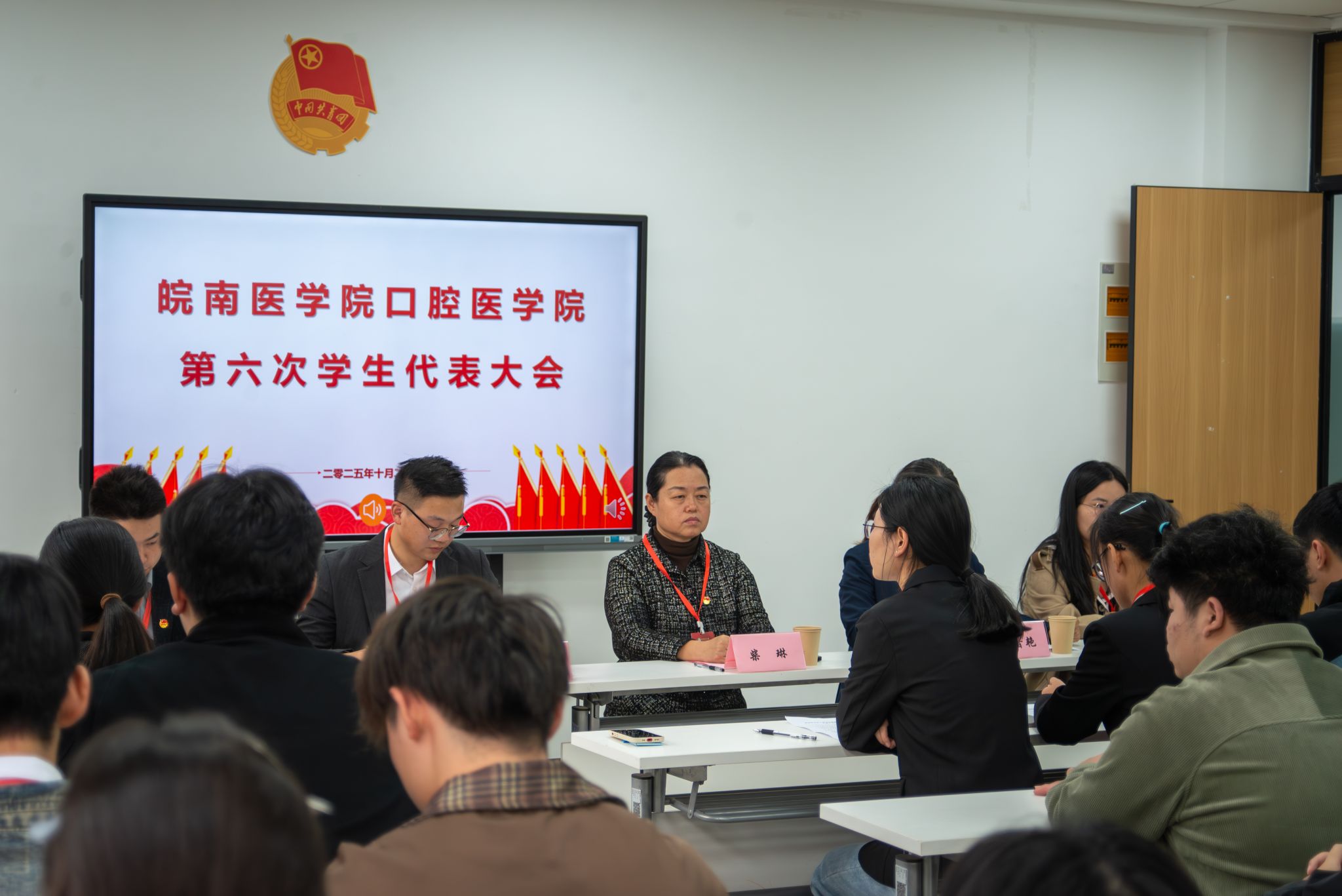 为深入贯彻落实习近平总书记关于青年工作的重要思想,凝聚青年共识,汇聚青春力量,近日,口腔医学院第六次学生代表大会在学院多功能教室顺利召开。口腔医学院党委书记柴琳,党委副书记、纪委书记张晋艳,团委书记王杰,各年级团总支书记及院第六次学代会全体学生代表共五十余名师生参加会议,会议由王杰主持。