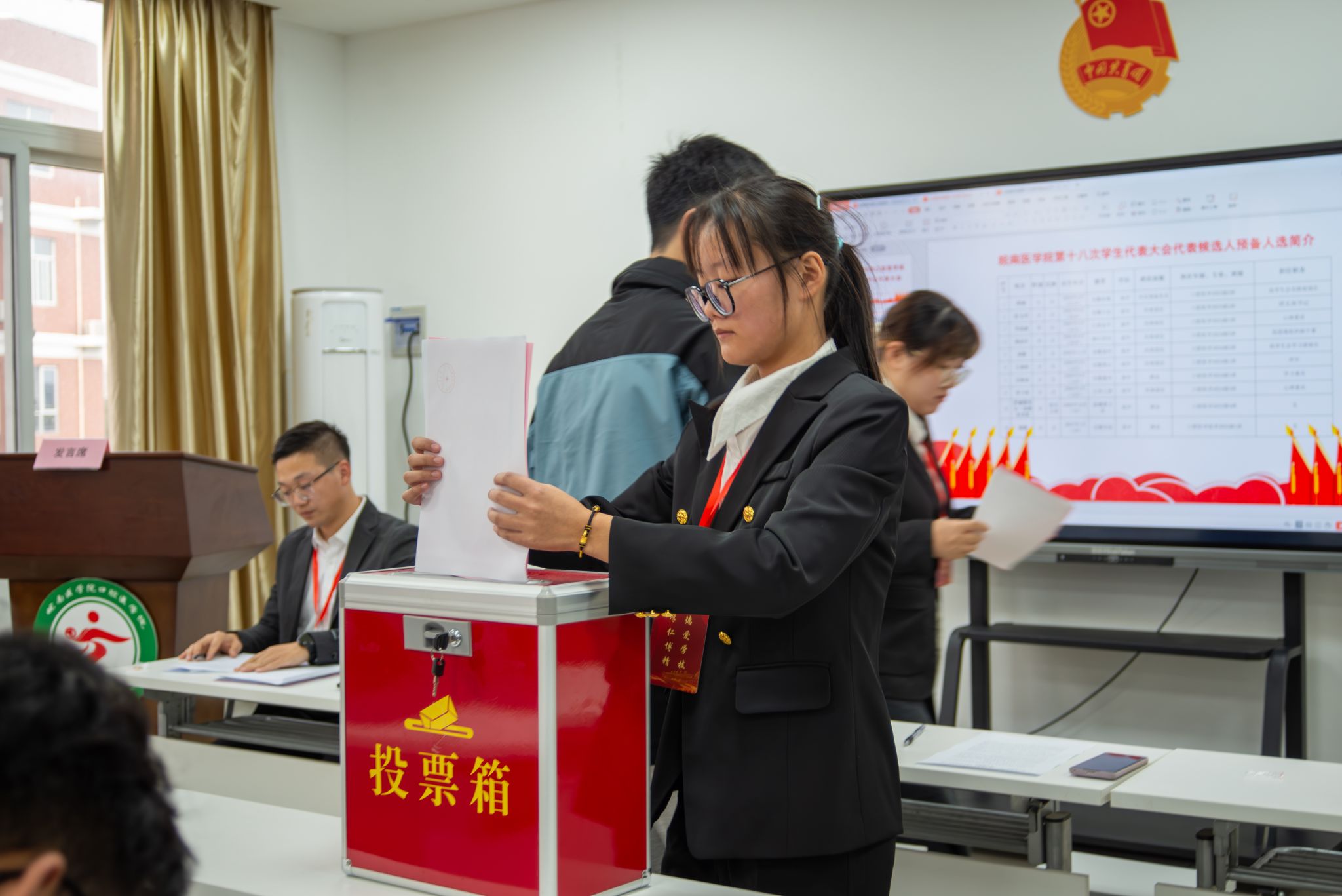 根据大会要求,全体代表以现场无记名投票方式选举产生校第十八次学生代表大会代表和口腔医学院第十三届学生会主席团。与会代表现场填写选票并依次投票。根据选举结果,朱玉玲等三位同学当选口腔医学院第十三届学生会主席团成员,邱雨等八名同学当选校第十八次学生代表大会代表。