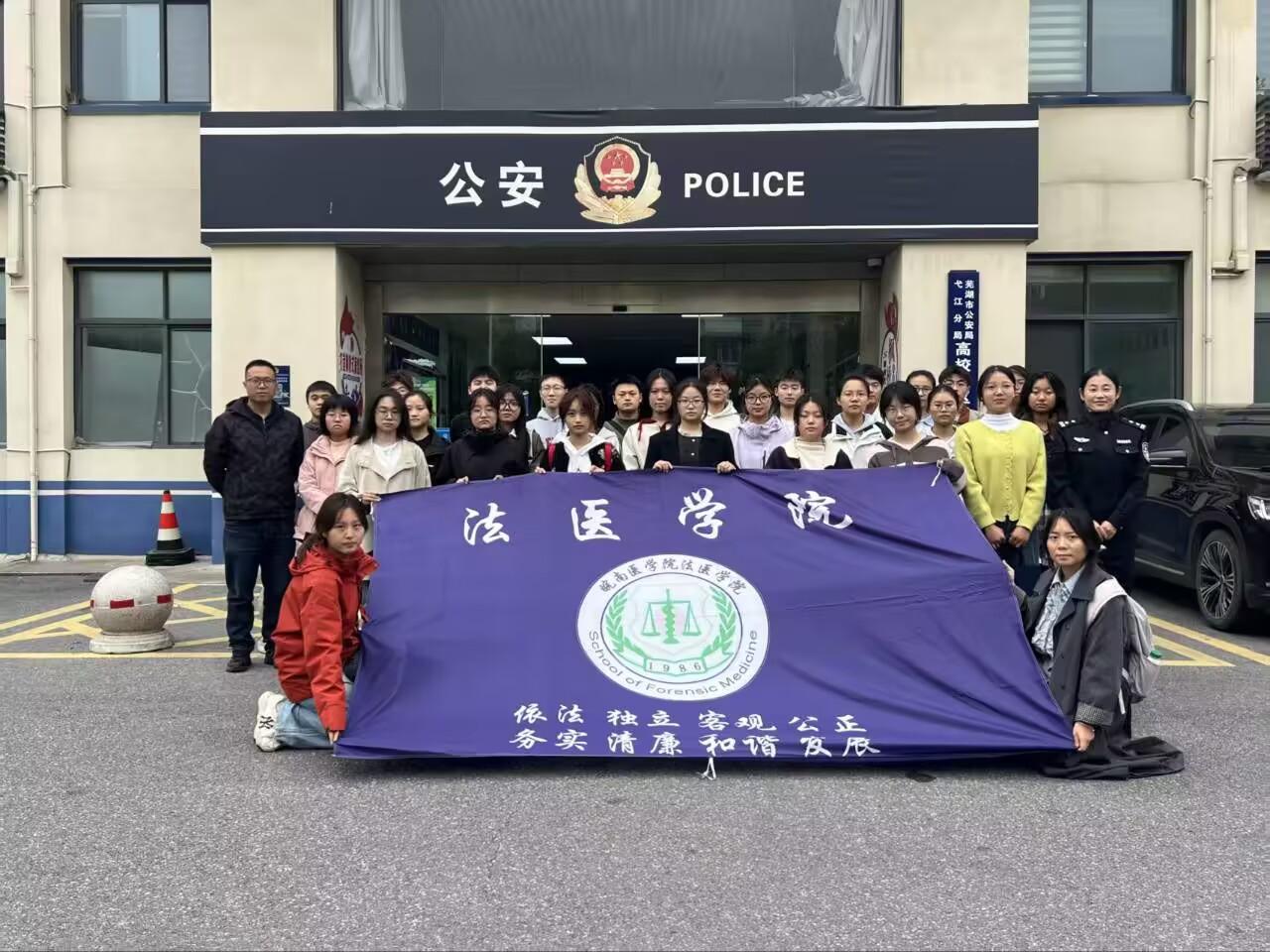 为深化学生对公安实务工作的理解,引导学生提前做好职业生涯规划,11月4日,法医学院组织2025级司法鉴定学、法医学专业部分学生代表前往芜湖市弋江区高校园区派出所,开展了一场别开生面的场景式实地体验学习活动。