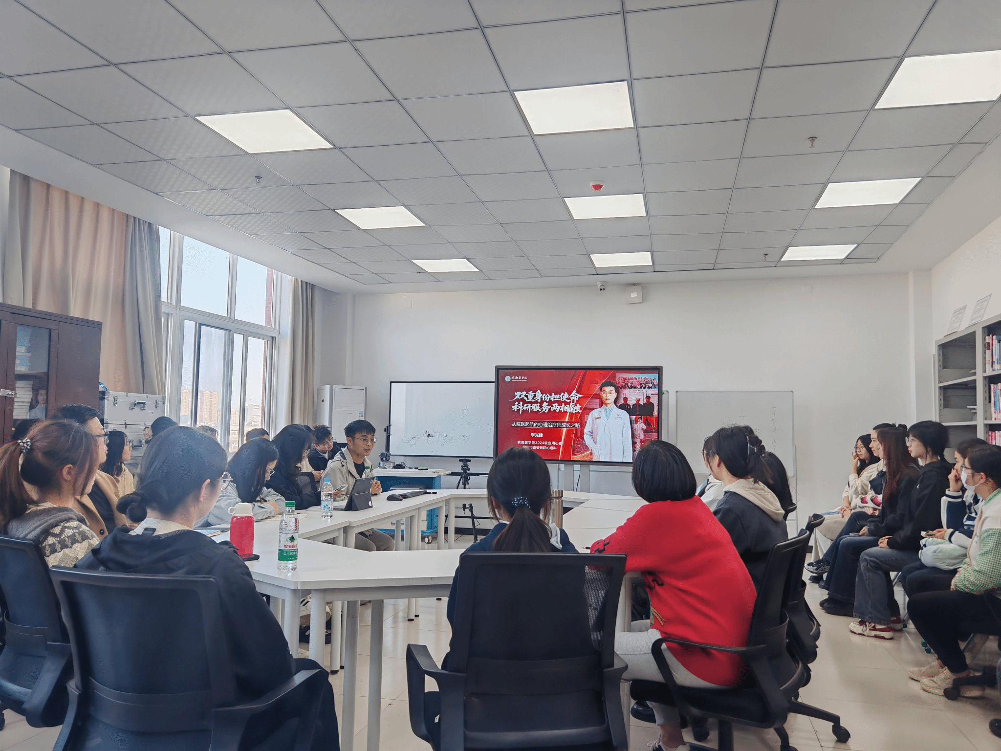 本次分享为在场学子提供了宝贵的成长参照,优秀学长的经历与心得,不仅为学弟学妹们在科研探索与职业规划上指明了方向,同时也激发了他们跨学科学习、以专业服务社会的内在动力。相信这段分享将成为一粒种子,助力更多皖医学子在心理学道路上稳步前行,用专业守护心灵,用行动书写青春。(达小丫/文 方琪/摄)