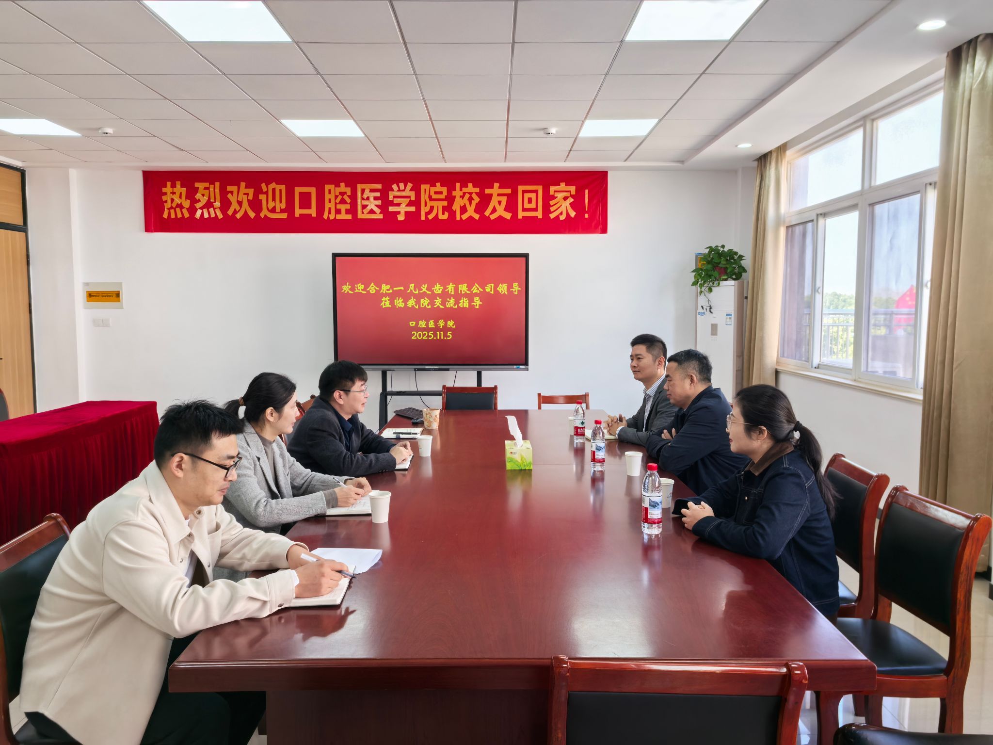 在与合肥一凡义齿有限公司的洽谈中,邓超介绍了口腔医学院在学科建设、人才培养、科学研究与社会服务等方面取得的成果,强调产学研深度融合是推动学院高质量发展的重要路径,希望通过与公司的合作,有效促进教育链、人才链与产业链的有机衔接,实现资源共享与优势互补。潘明介绍了公司的发展历程、核心技术、业务布局与未来规划,并表示口腔医学院为行业输送了大量高素质专业人才,在业界享有盛誉。公司高度重视与高校的协同创新,期待在数字化工序研发、临床技术攻关与人才培养模式创新等方面开展实质性合作,共同推动口腔修复技术的进步与应用。