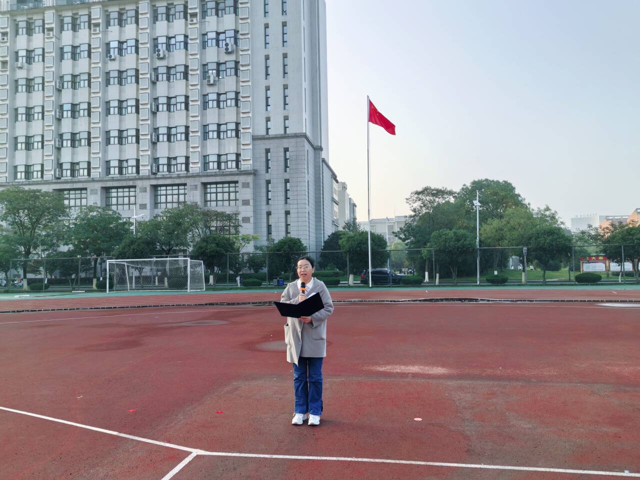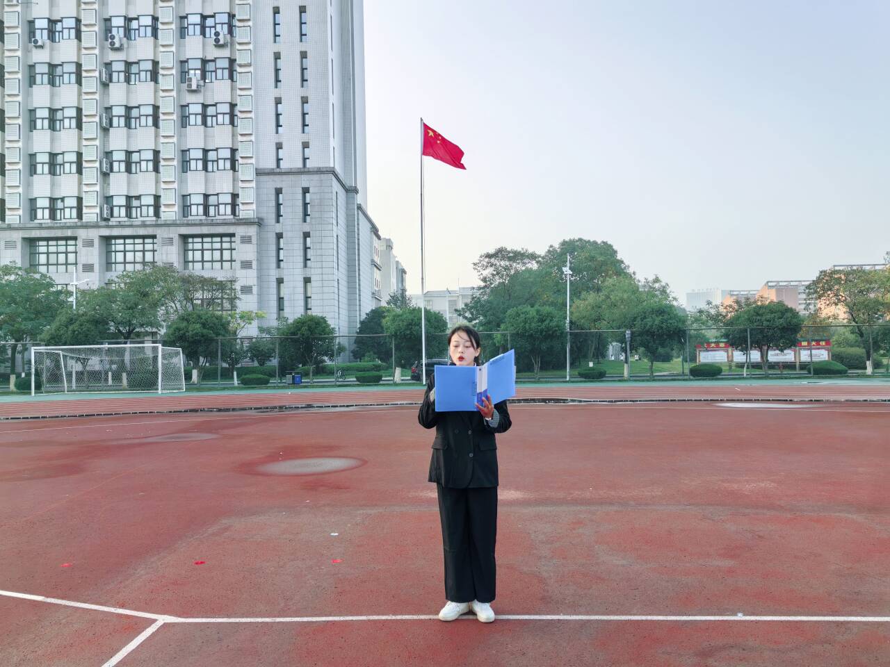 升旗仪式后,校青马班学员代表吴静琪同学以《青春,在军营和校园绽放》为题进行主题发言。作为一名退役在校大学生,她分享了在军营淬炼与校园求学中的成长感悟,展现了新时代青年将把个人的理想追求融入党和国家事业之中的使命担当,激励同学们志存高远、脚踏实地,不畏艰险、勇于奋斗,让青春在挺膺担当中绽放光彩。