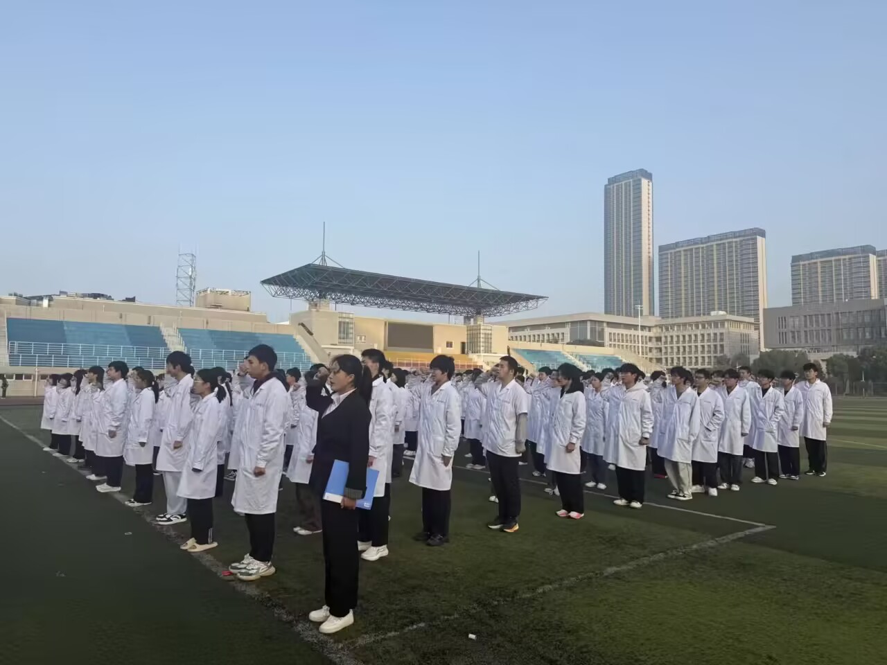 随后,举行庄严的宣誓仪式。在苏莉老师的领誓下,2025级全体学生举起右拳,面向未来许下郑重承诺:“我志愿投身司法事业,恪守科学精神,探寻事实真相;秉持公正原则,维护法律尊严……”铿锵有力的誓言在晴空下回荡,表达了同学们对司法事业的无限忠诚以及对“为生者权,为死者言”神圣职责的坚定信念。