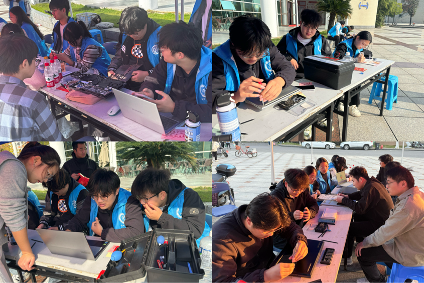 技术赋能,服务与科普并重。活动现场,技术精湛的志愿者们为全校师生提供了涵盖系统维护、硬件检修等多方面的电脑检测与维修服务。面对系统卡顿、蓝屏死机等软件故障,志愿者们耐心排查、细致调试;针对病毒查杀、硬件清灰、软件安装以及各类故障咨询,他们也都以专业的态度和娴熟的技术,逐一“诊治”,用实际行动解决了众多师生的电脑难题。
