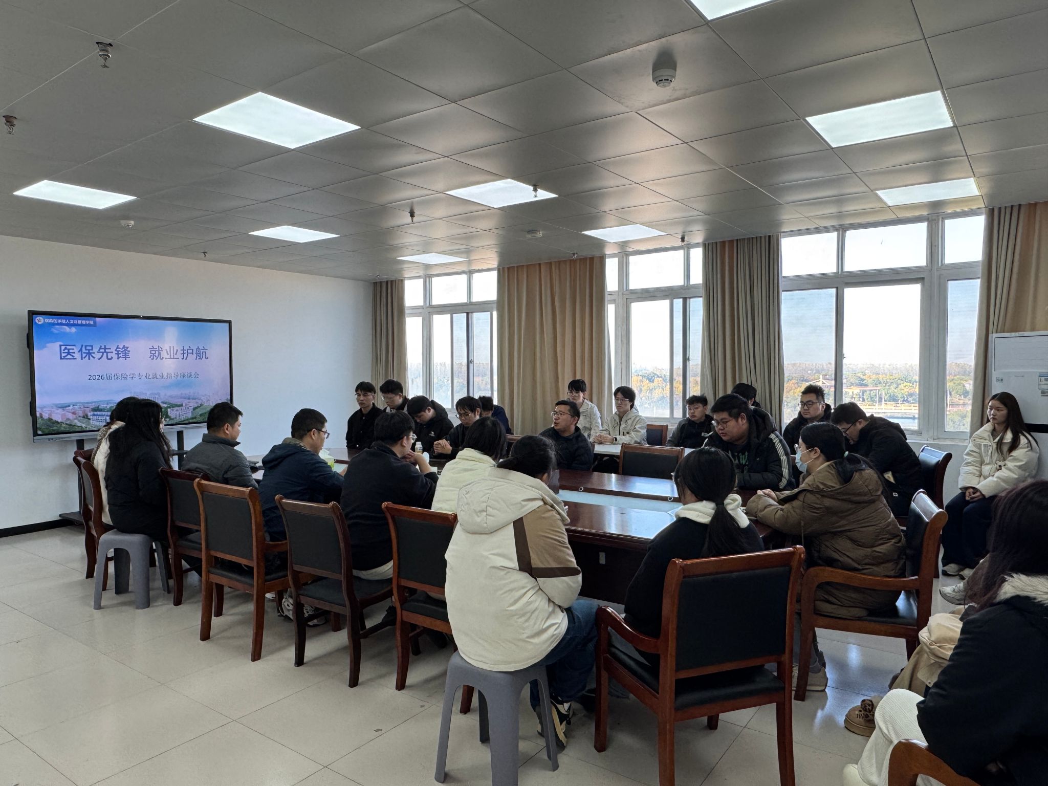 为了解2026届保险学专业学生就业动态,帮助毕业生解决实际困难,11月19日下午,人文与管理学院举办了以“医保先锋 就业护航”为主题的就业指导座谈会。会议由学院党委副书记钱彬彬主持,医疗保险教研室全体教师及2026届保险学专业学生参加会议。
