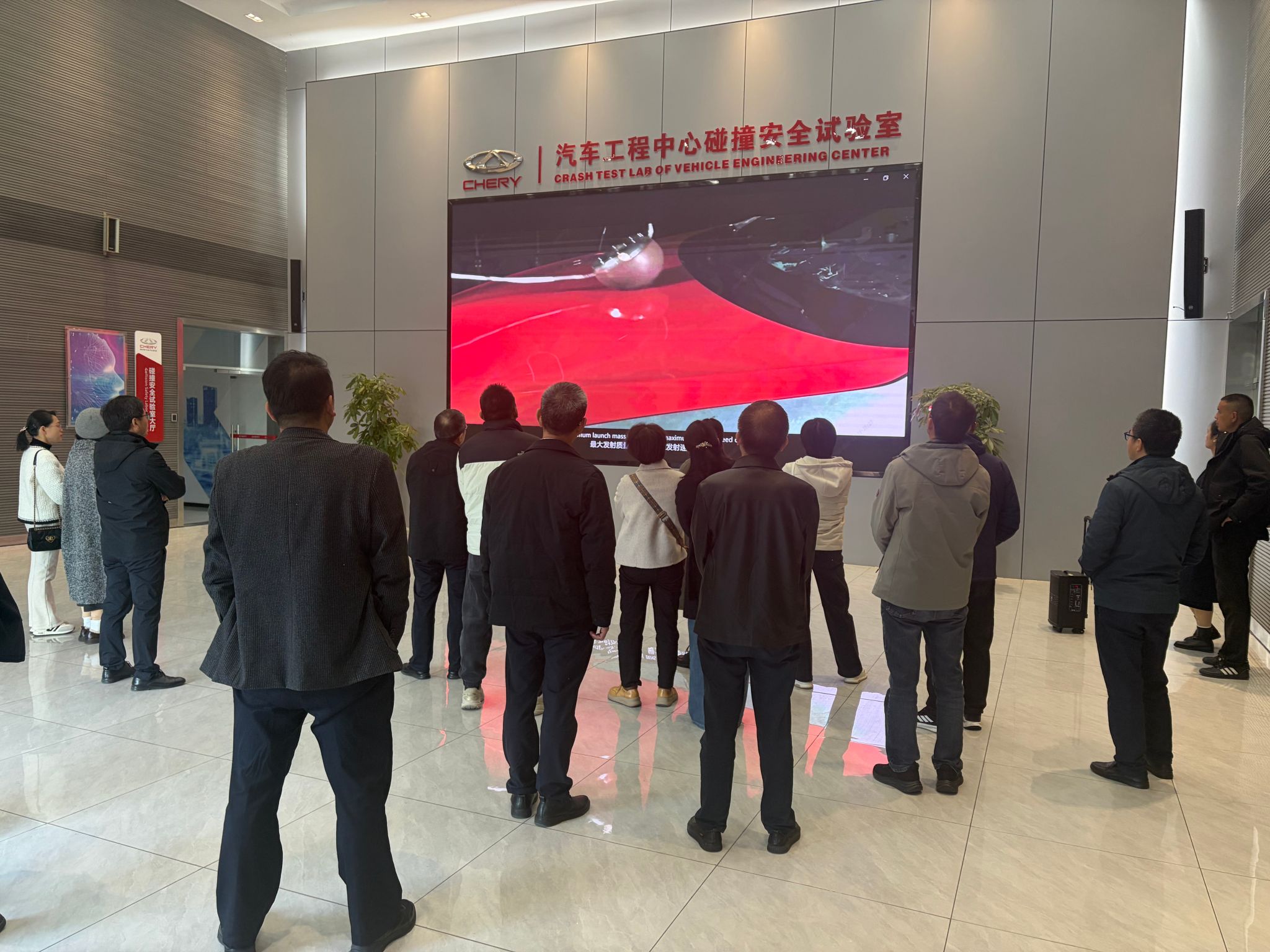 参加人员走进奇瑞智造一工厂总装车间,实地观摩智能机械臂精准高效地完成座椅、仪表盘、轮胎等关键部件的装配流程,以及整车出厂前的各项检测环节。随后,大家前往奇瑞汽车工程中心碰撞安全试验室,深入了解车辆安全防护技术与人工智能预警系统的研发应用情况。