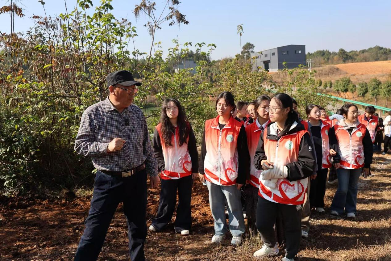 11月22日上午,师生们首先来到南陵县热爱村传统文化展示馆,了解地方民俗与乡土文化的传承与发展。随后,大家走进霖玉轩花果园开展现场教学。习近平新时代中国特色社会主义思想概论教研室张佳慧老师结合花果园的创业实践,为同学们讲解了社会主义先进文化在乡村振兴中的生动体现。果园创始人朱春玉向大家分享了从城市管理者到返乡创业者的心路历程,讲述了如何通过绿色发展理念,将荒山变为“四季飘香”的生态果园。同学们在劳动实践中亲身体验了“绿水青山就是金山银山”的发展理念,深刻感受到社会主义先进文化在乡村振兴中的生动实践。