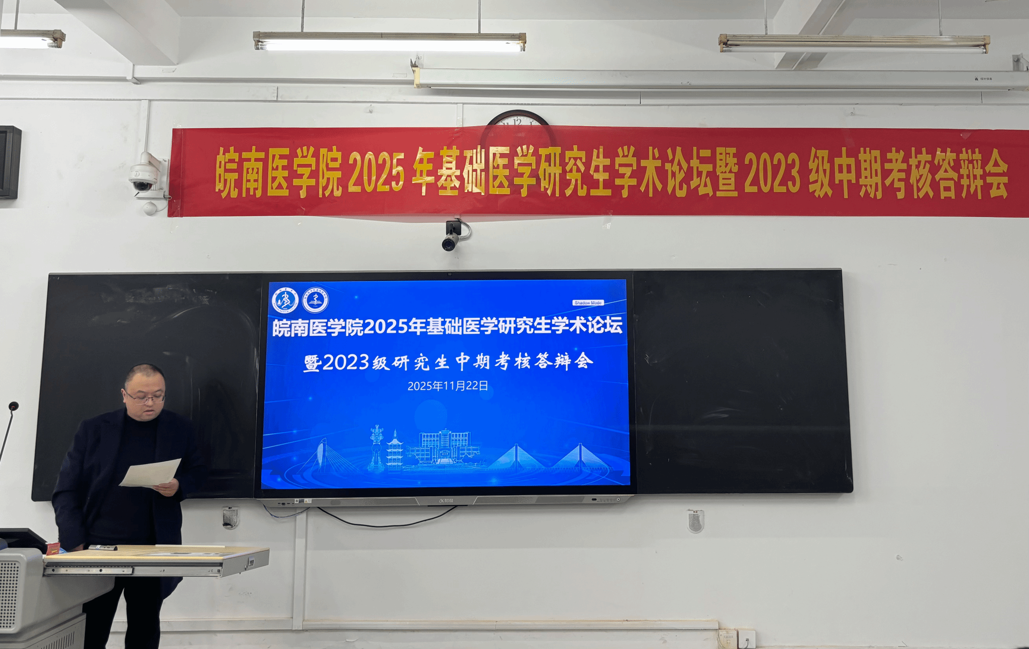 11月22日,基础医学院在一号教学楼1102教室举办基础医学研究生学术论坛暨2023级研究生中期考核答辩会。本次答辩以学术交流为核心、中期考核为抓手,创新融合壁报展示与考核答辩环节,特邀校内六位专家组成评委组,为基础医学专业研究生搭建起展示研究成果、提升学术能力的优质平台。答辩期间,基础医学专业全体研究生全程参会聆听报告,研究生导师列席交流指导,形成了浓厚的学术互动氛围。