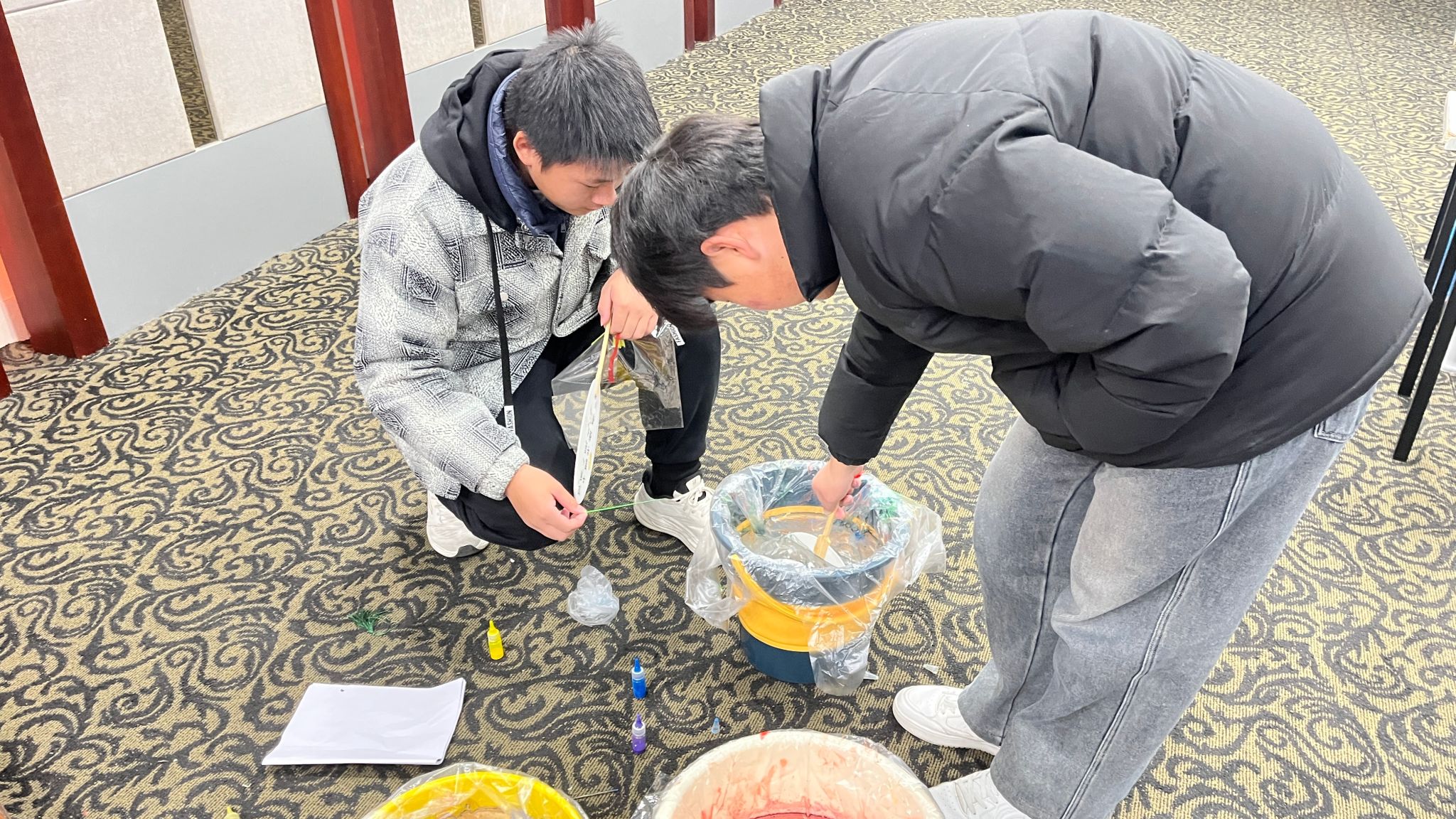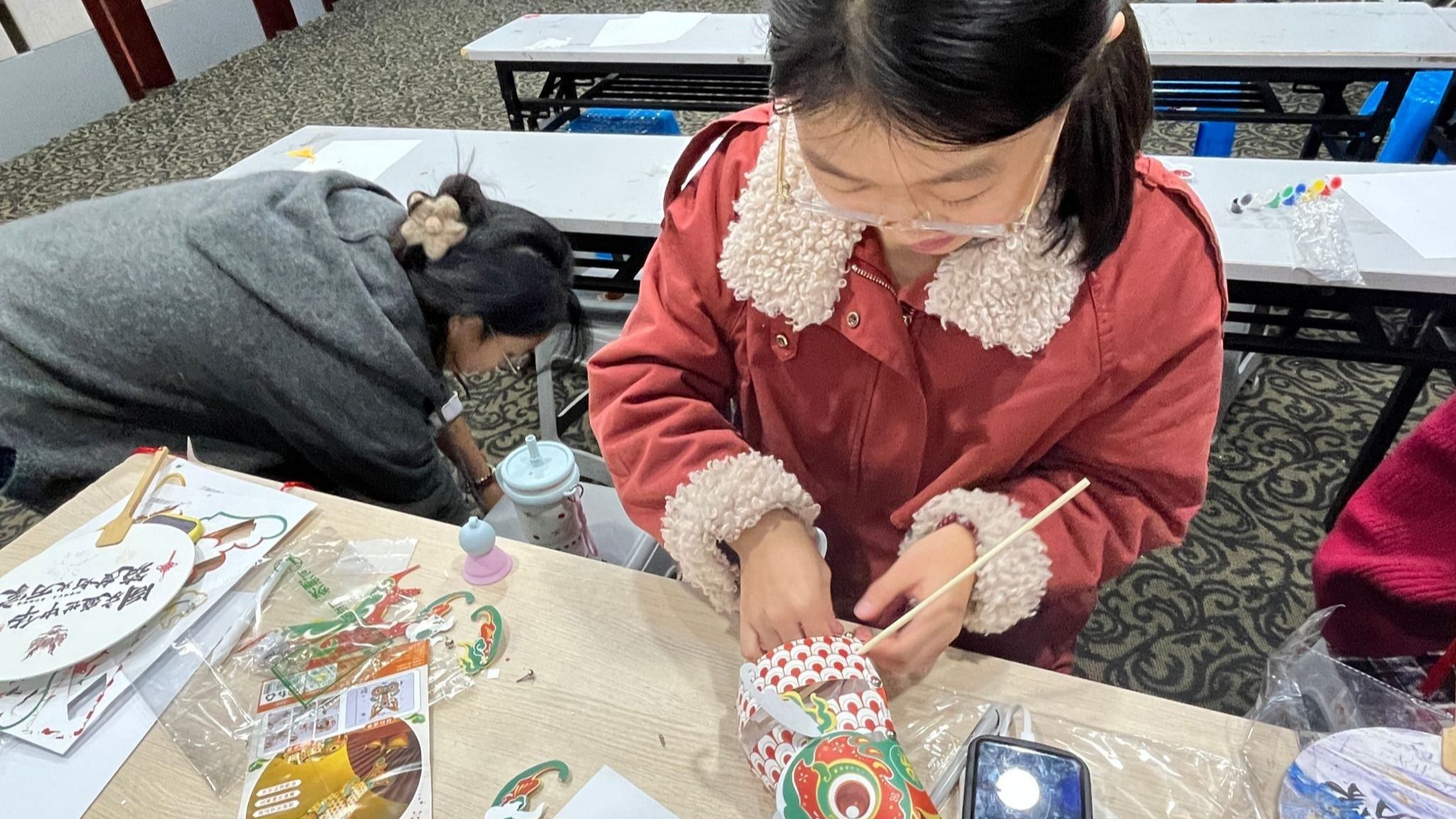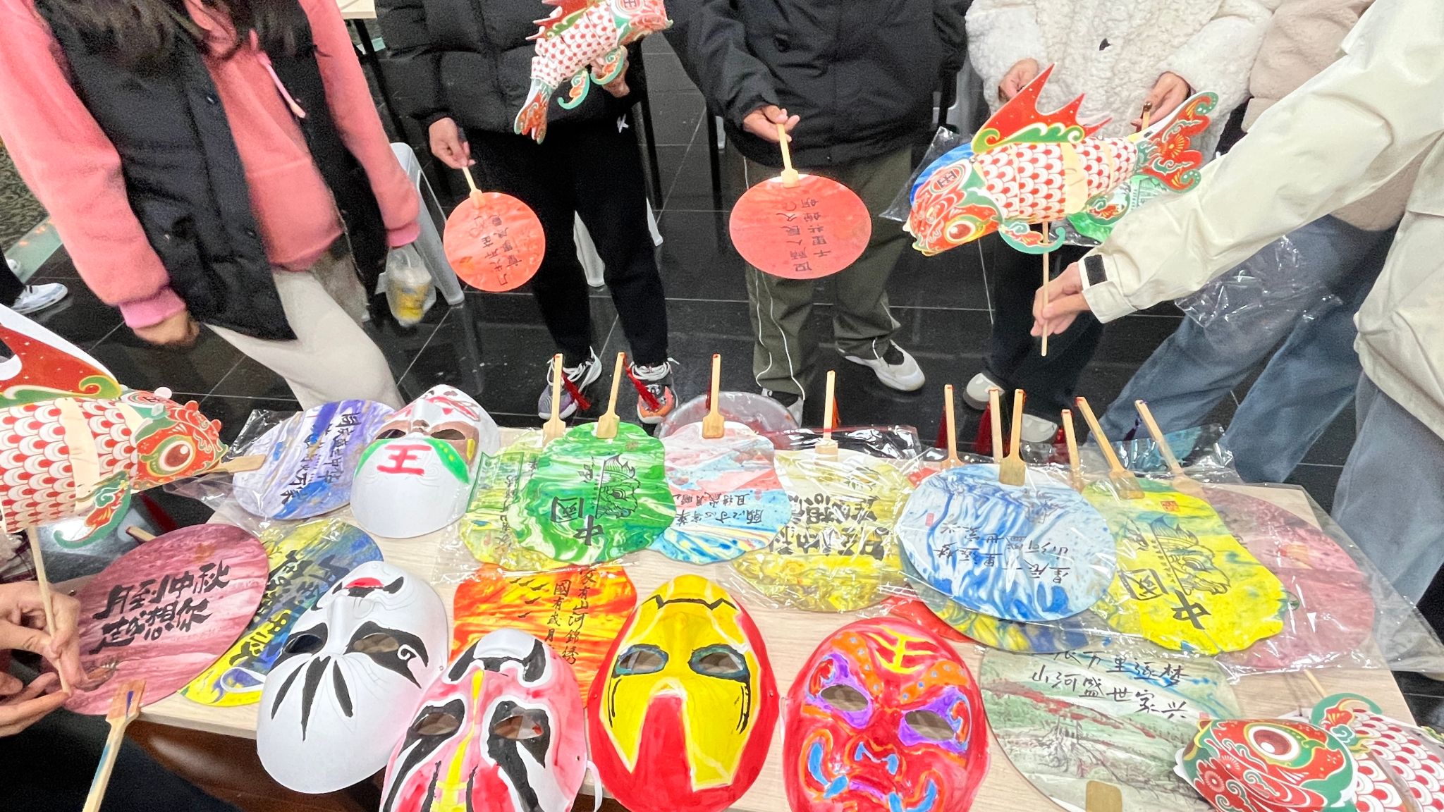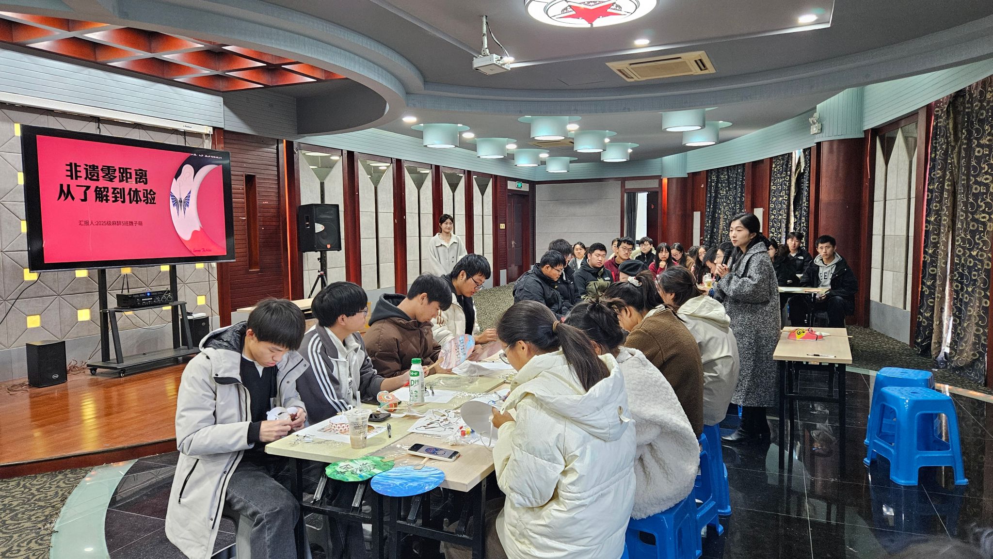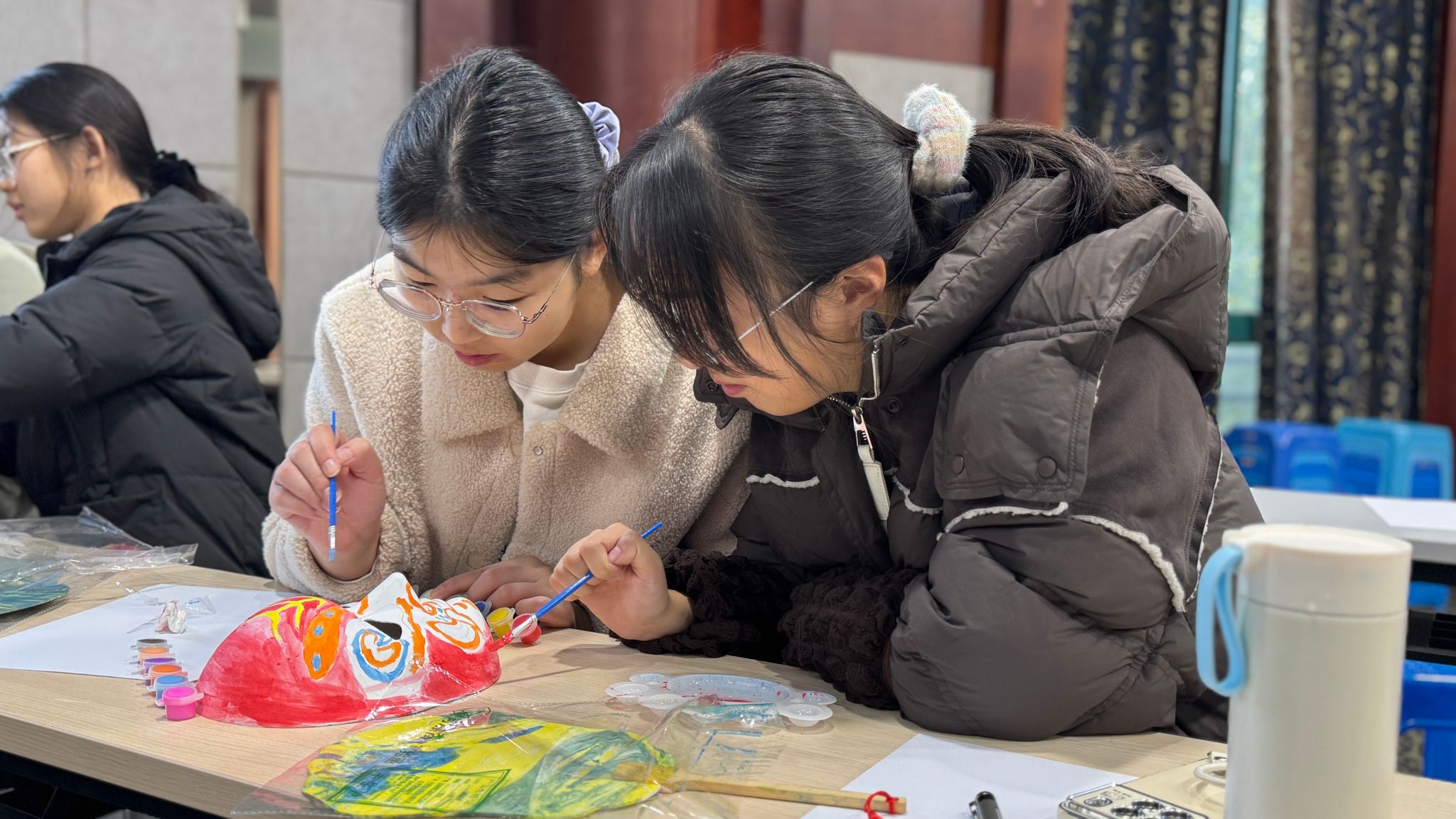 活动伊始,团支部书记魏子萌同学用生动案例与直观图片讲解了非物质文化遗产的定义、特征与门类,从联合国教科文组织对非遗的界定,到“活态性”“社区性”等核心属性的阐释,从梁祝传说、京剧昆曲等经典项目到早餐里的酿造技艺、衣服上的蓝印花布等身边的非遗元素,帮助团员青年深刻理解非遗并非尘封的历史,而是融入日常生活的文化基因与集体记忆。互动交流环节,来自甘肃省的杨芙蓉同学热情分享了凉州攻鼓子、社火、兰州太平鼓等非遗瑰宝,展现了陇原大地多元的文化风貌;来自安徽省的李健康同学从文房四宝到徽州民俗,从黄梅戏、徽剧等传统戏剧到新安医学、五禽戏等传统医药,分享了安徽的非遗项目与文化特色,同学们在交流中增进了对不同地域文化的了解。手工实践环节,同学们分组参与了京剧脸谱描绘、非遗鱼灯制作、非遗漆扇创作活动,在一笔一画、捆扎涂抹中体验了非遗技艺的复杂性与珍贵性,更在实践中深化了对非遗文化内涵的理解。