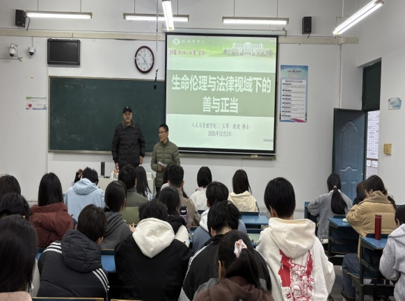 12月3日下午,基础医学院邀请人文与管理学院党委书记王军教授为2024级本科生作《生命伦理与法律视域下的善与正当》的专题讲座,讲座由学院党委书记马旭明主持,生物化学与分子生物学教研室部分教师与学校相关学院六十余名学生参加。