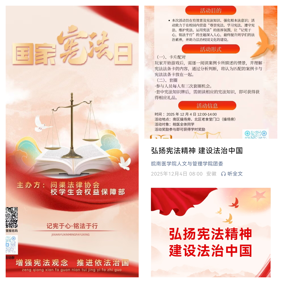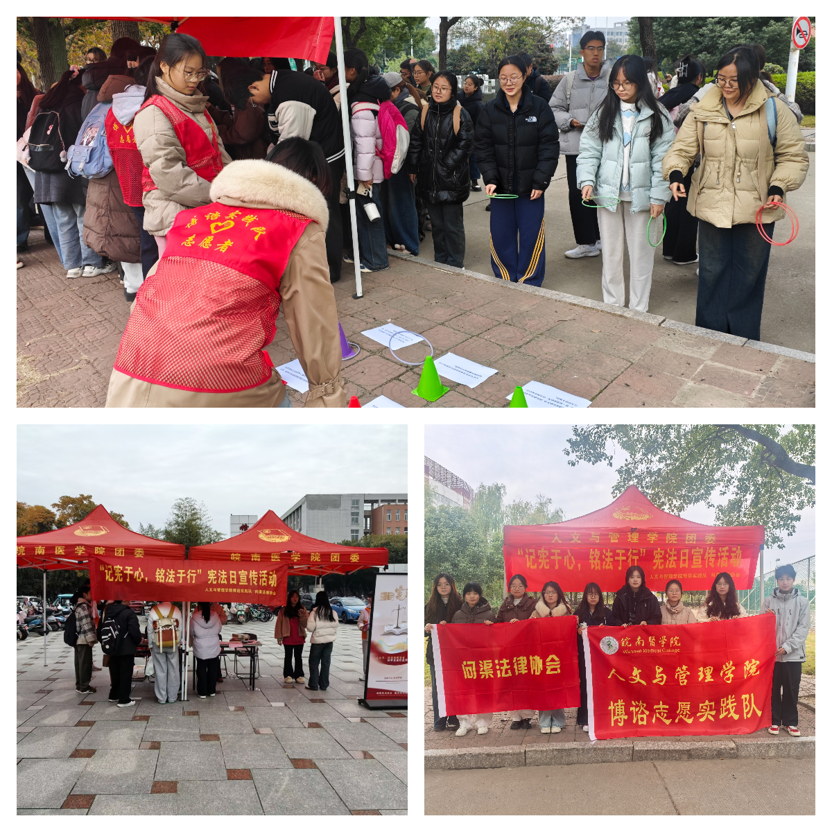 12月4日,问渠法律协会联合校学生会、人文与管理学院学生会共同举办“案例与法条配对”“宪法知识套圈”趣味活动,突破传统普法的单向灌输模式,激发同学们对宪法的学习兴趣,引导广大师生在亲身参与中直观理解宪法作为国家根本大法的地位、作用以及对公民基本权利与义务的规定,在校园内营造“尊崇宪法、学习宪法、遵守宪法、维护宪法、运用宪法”的浓厚氛围。