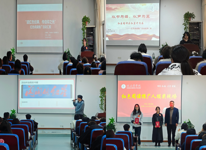 总结会上,18支小分队以“PPT汇报+实践视频”形式分别汇报各自阅读活动的亮点与成效。评委们认真听取各队的精彩汇报,依次通过活动内容、现场表现、创意设计三方面综合评价,最终评选出一、二、三等奖项若干。评委专家们对此项活动取得的成效予以充分肯定,并一致认为,青年学子以新颖的形式、真挚的情感和扎实的行动积极推动红色文化传播,引导更多人成为红色故事的讲述者、红色精神的传播者、红色信仰的践行者,充分展现了皖医青年的文化自信与使命担当。