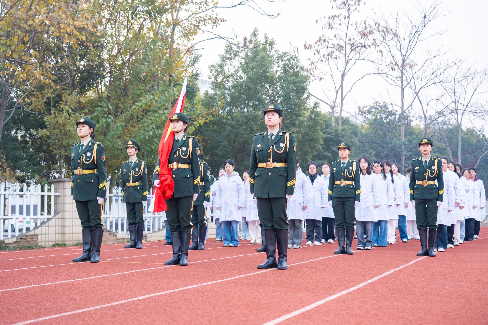 为深化爱国主义教育,强化思想引领,夯实育人阵地,12月8日清晨,人文与管理学院在南区操场举行“弘文励初心 担当育新人”升国旗仪式暨“国旗下的思政课”活动。人文与管理学院党委副书记钱彬彬、各年级辅导员和2025级全体学生参加活动。