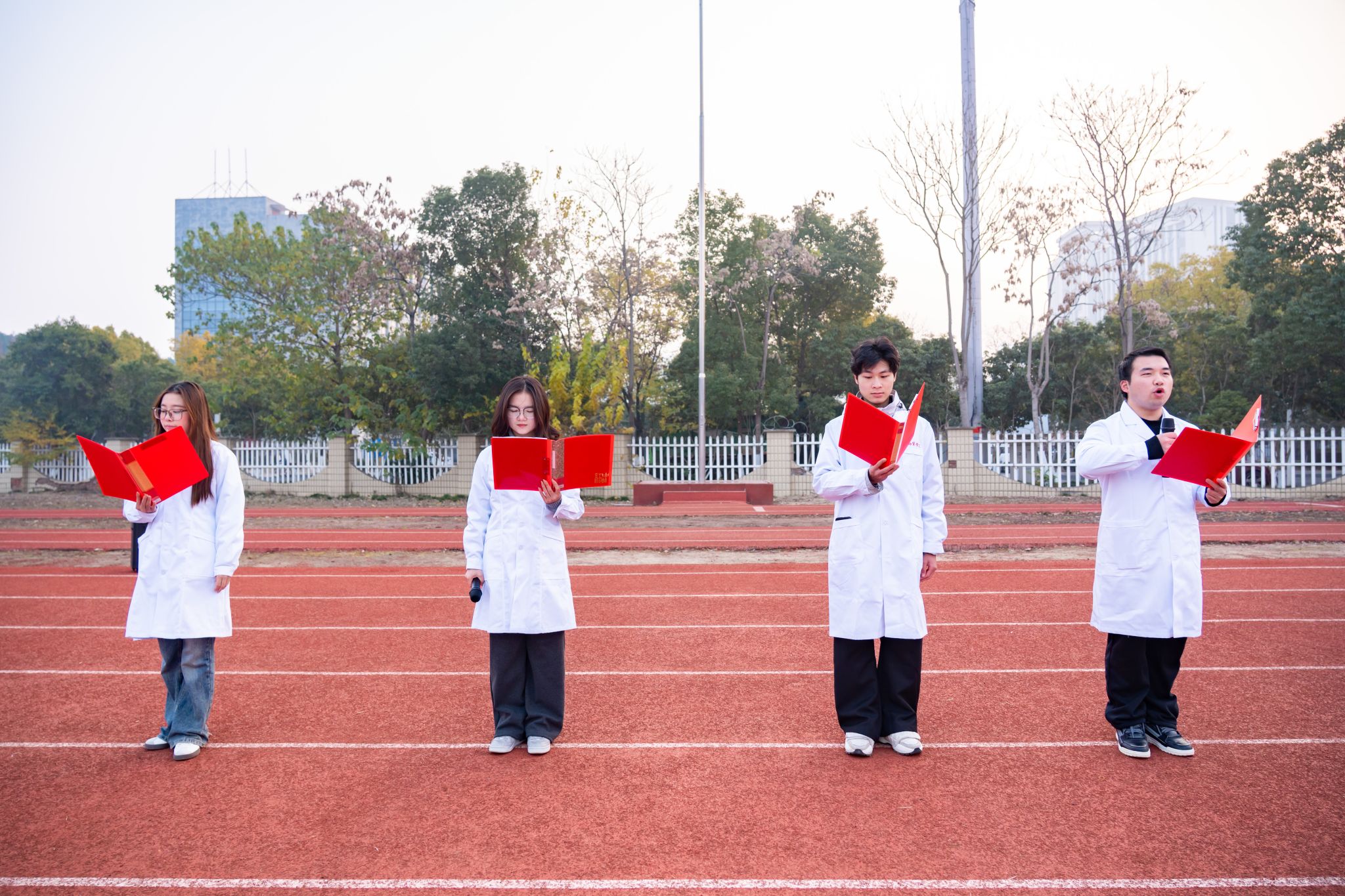 紧接着,学生代表深情朗诵《以青春之名,赴时代之约》,以激昂文字抒写报国志向。活动在悠扬校歌的合唱中圆满落幕,仪式庄重、环节紧凑,形成了一堂“行走的思政课”。