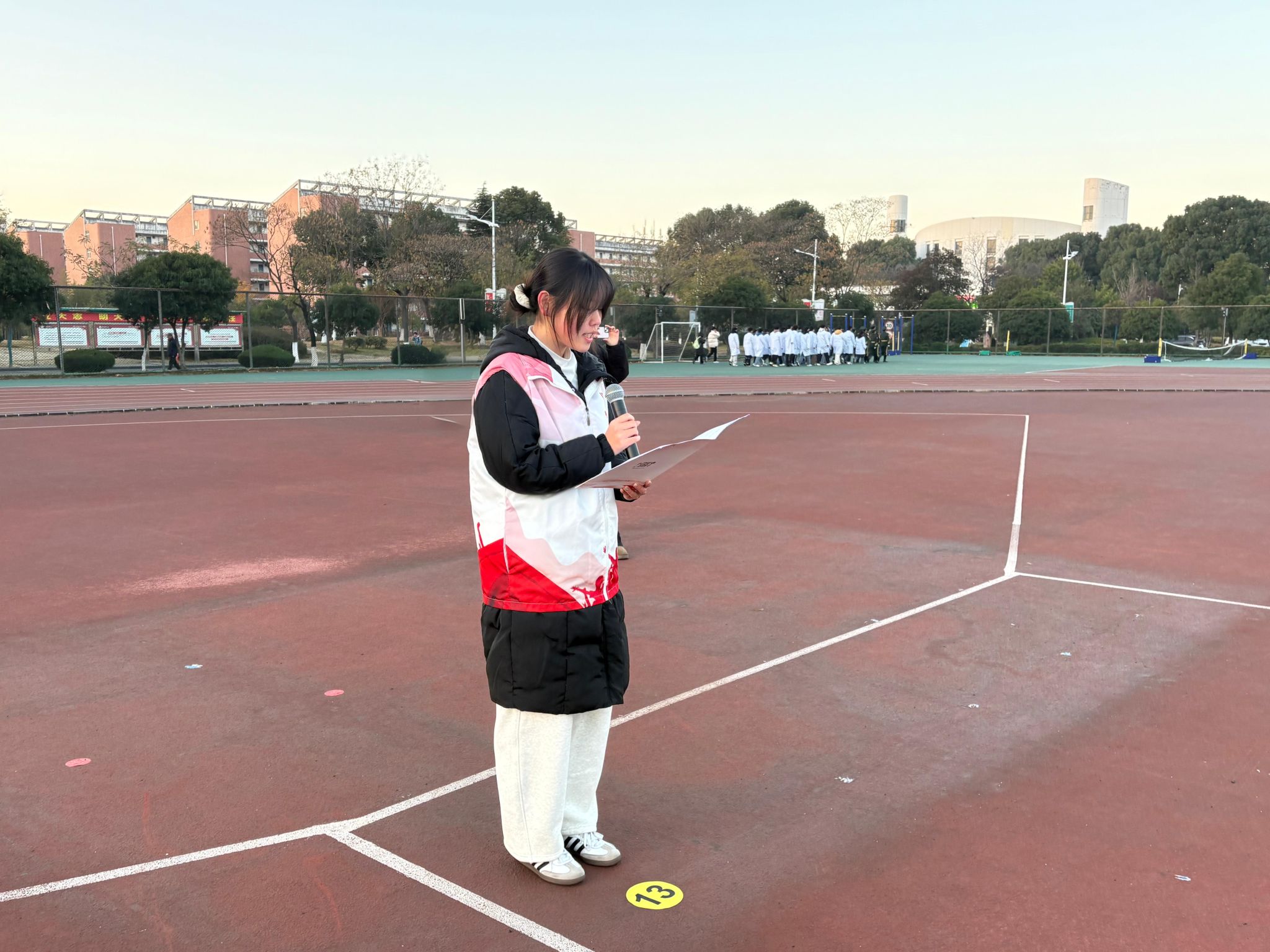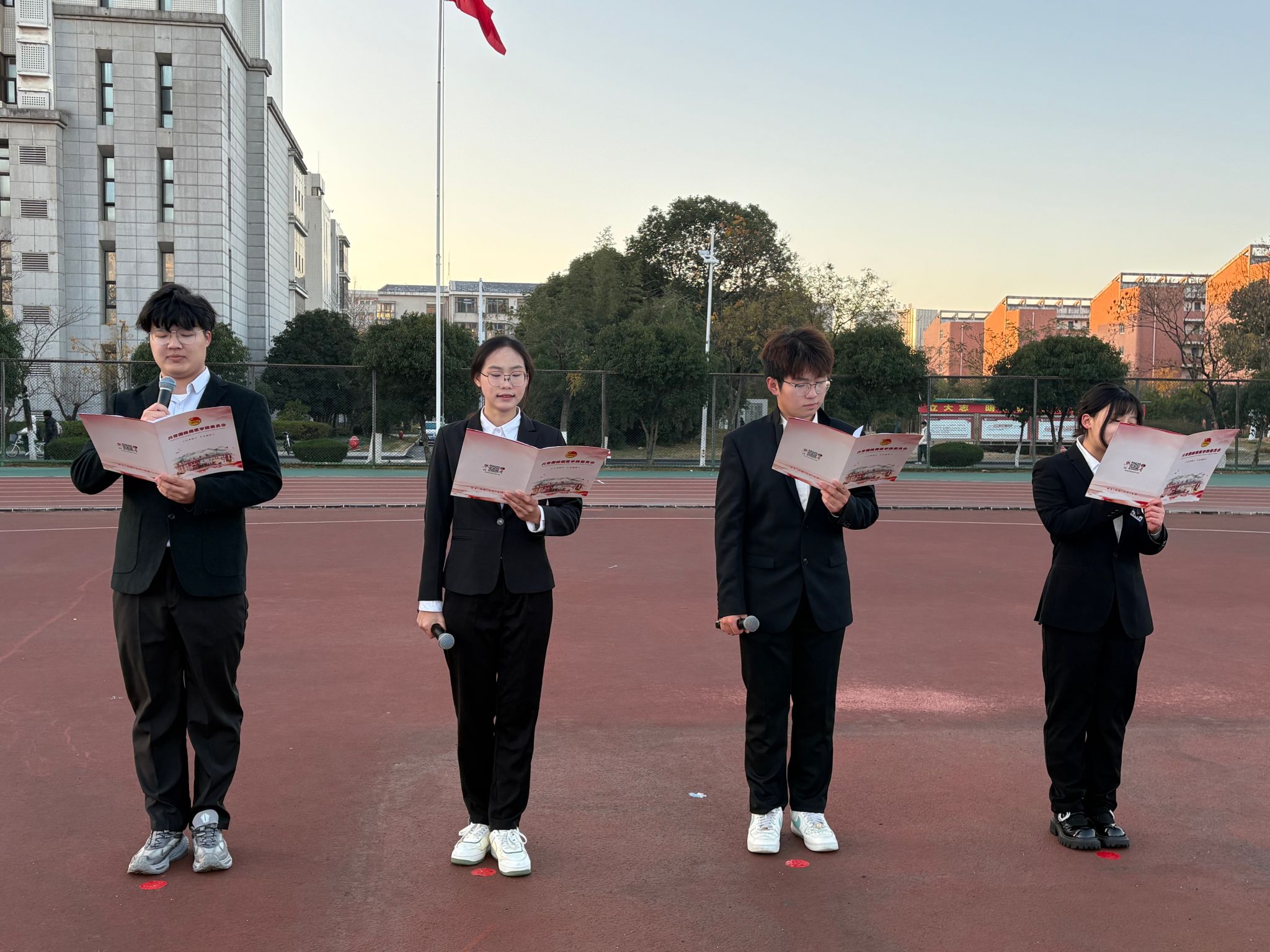 清晨微寒,国旗护卫队步伐整齐、庄重肃穆,护送五星红旗入场。随着《义勇军进行曲》响起,全体师生肃立行注目礼,齐声高唱国歌,凝视五星红旗冉冉升起,以此表达对祖国的深切热爱与崇高敬意。