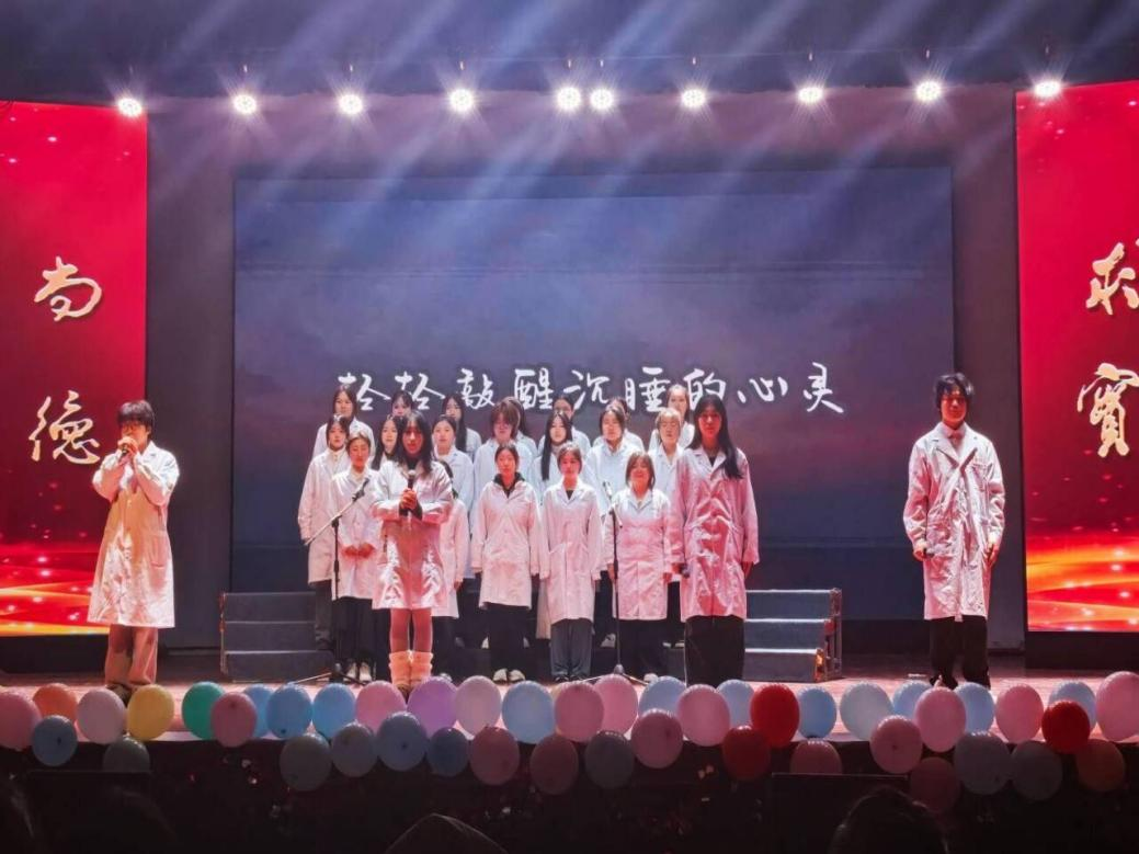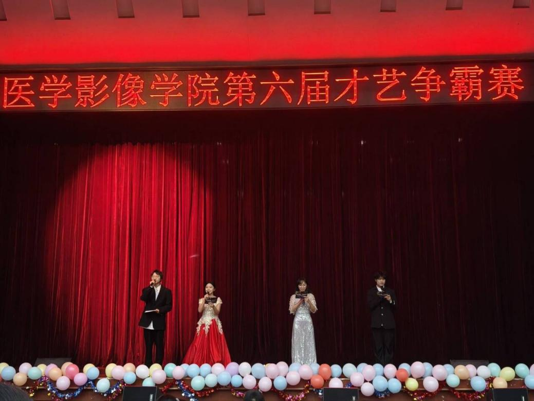 本次大赛在活力满满的青春集体舞表演中拉开帷幕,节目涵盖歌唱、舞蹈、乐器演奏、语言类表演等多种形式,充分展现了医学影像学院学子的多元才华与青春风貌。歌曲《千年》和《光年之外》唱响跨越岁月与星海的羁绊,诠释直抵人心的真挚情感;小品《考试结束还有十五分钟》《一只行李箱引发的故事》以校园生活为蓝本,用诙谐幽默的演绎引发台下学子的强烈共鸣;朗诵《少年游,青春长卷》《青春铸魂,红色永续》则将少年意气与青春情怀融入字里行间,以此传递着真挚的情感;乐队演奏《霜雪千年》奏响古典韵律,乐器声部默契交织,悠扬曲调营造出雅致悠远的艺术氛围;多元舞蹈各展风华,现代舞《向阳而生》以舒展有力的肢体语言,传递出直面生活,向阳而行的坚定信念,现代舞《咆哮》等则凭动感十足的舞姿点燃全场;最后,整场比赛在大合唱《明天会更好》中落下帷幕。