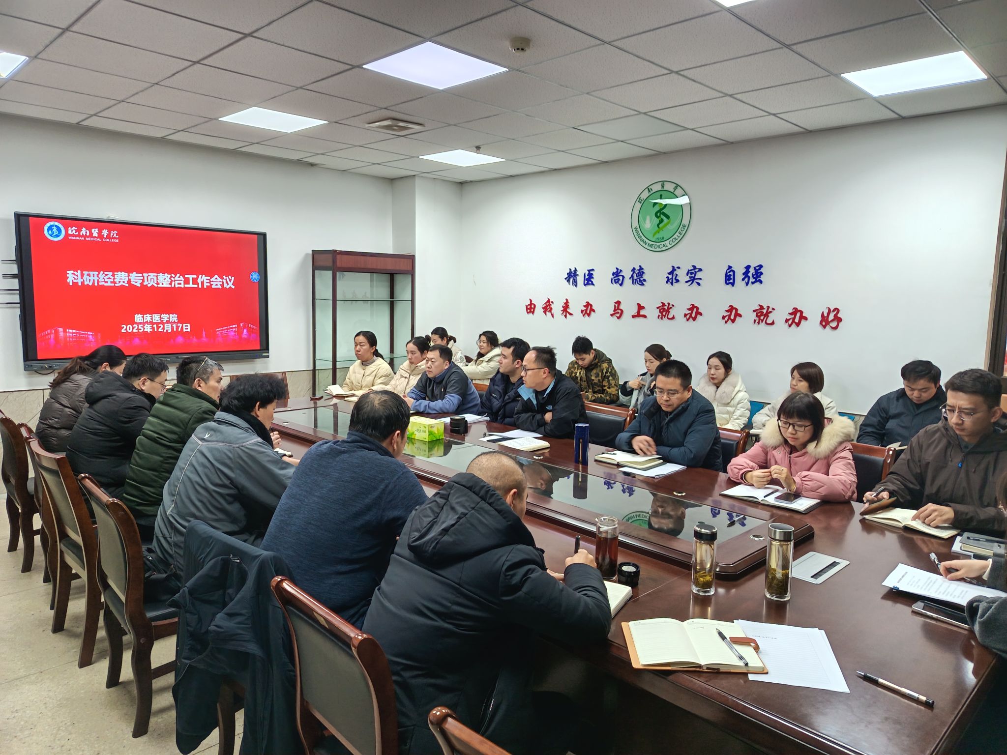 为深入落实高校领域突出问题系统整治工作部署,进一步规范科研经费管理使用,防范经费使用风险,全面提升科研经费使用效益,12月17日,临床医学院召开2025年科研经费专项整治专题会议。学院领导班子成员、全体教职工参会,会议由学院党委书记方基勇主持。
