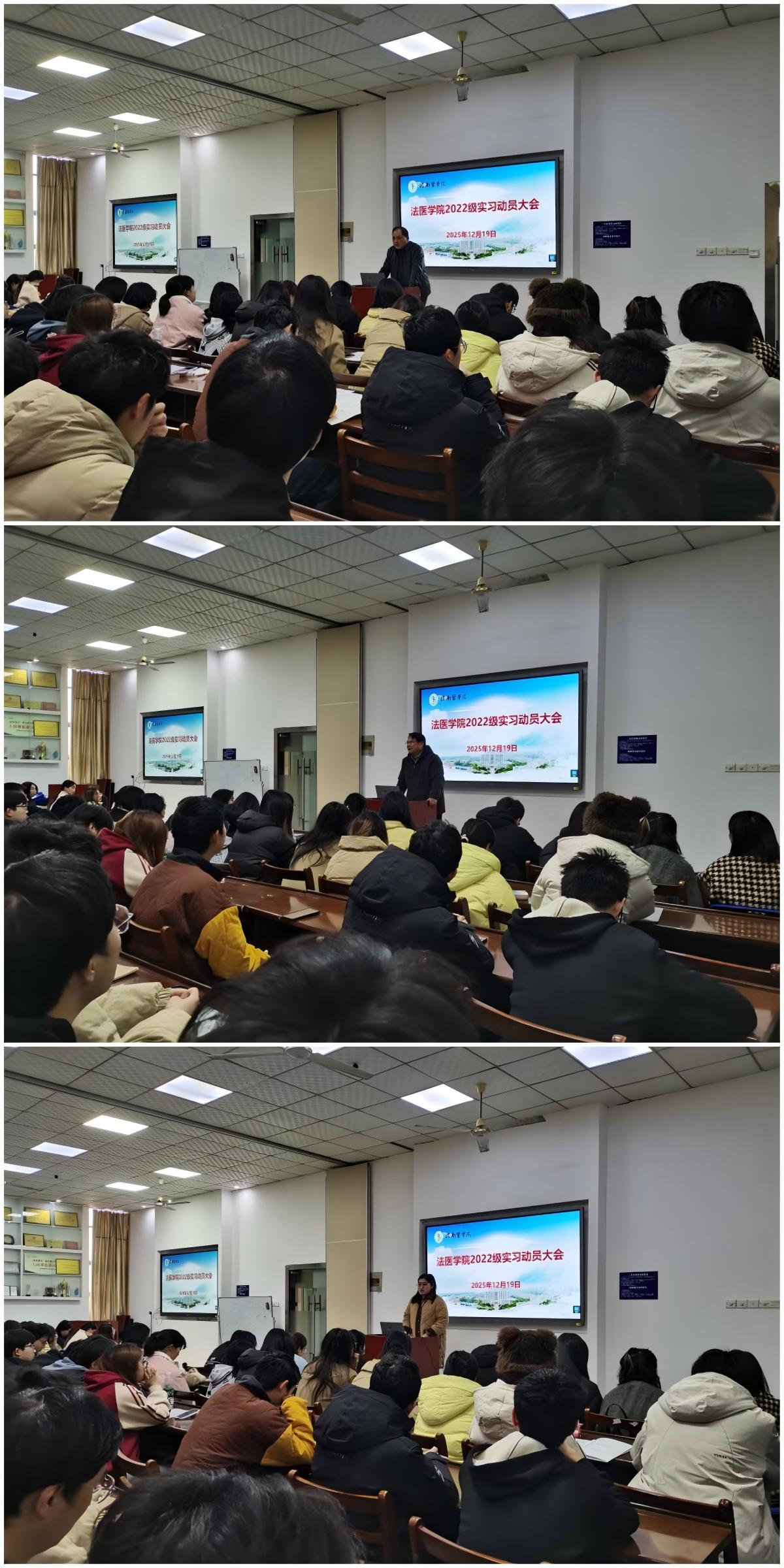 12月19日,法医学院举行2022级学生实习动员大会,标志着新一届学子奔赴各实习单位,开启至关重要的专业实践阶段。学院党委书记王金权、院长吴茂旺、党委副书记王夏露出席大会,为同学们进行临行前的指导与动员。