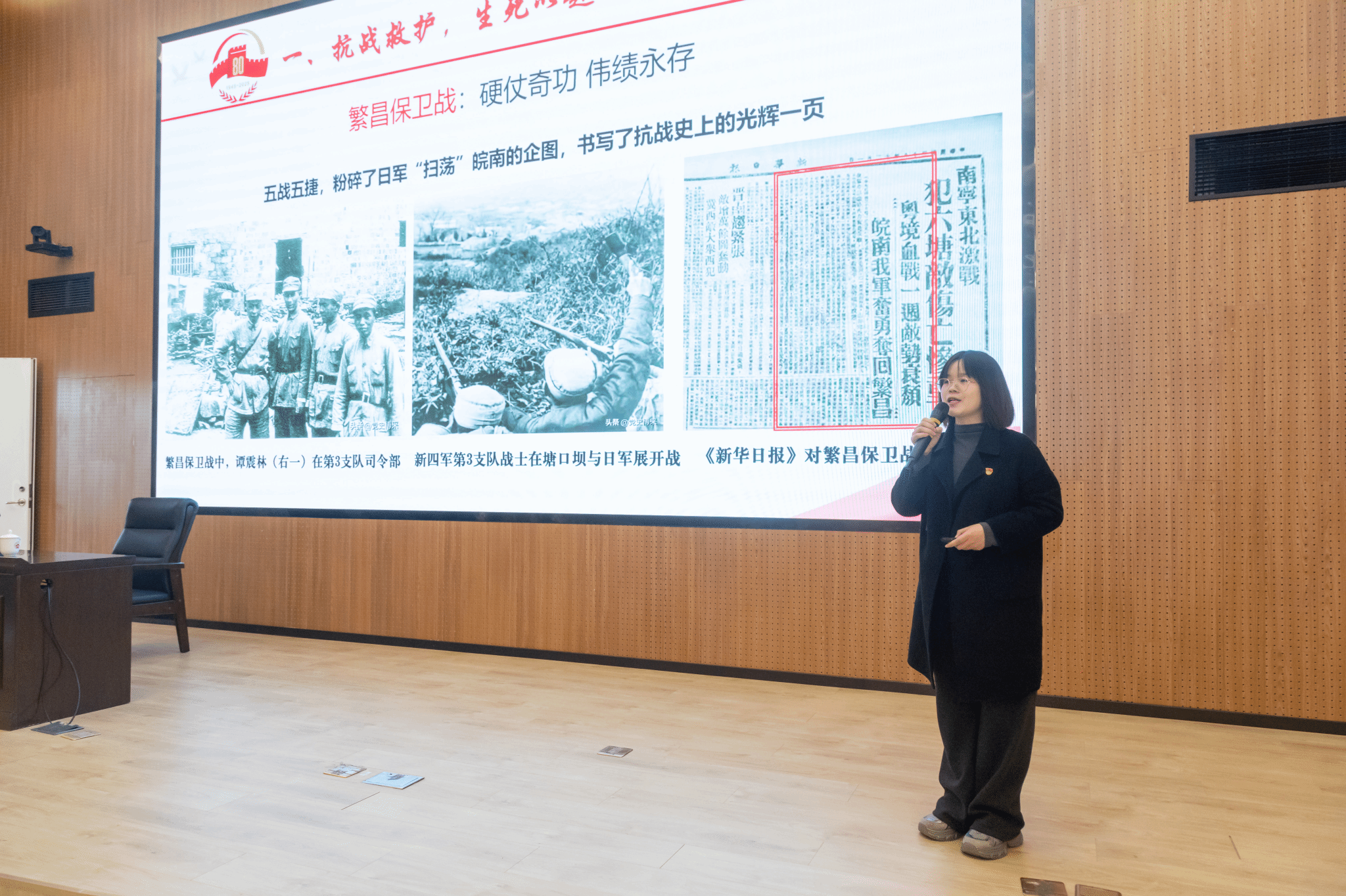 在“双师课堂”展示环节,张梦婷作为大学学段教师代表进行了题为《抗战救护,精神永存》的专题授课。教学展示以抗日战争时期广大医护人员的救护事迹为主线,生动讲述了傅连暲、李蓝丁、林可胜等白衣战士的感人故事,深入阐释了他们身上体现的伟大抗战精神。课堂最后,张梦婷引导学生传承先辈们的革命精神,树立远大志向、勇担时代重任,锤炼过硬本领、厚植医者仁心,将伟大抗战精神转化为努力学习、报效祖国的实际行动。