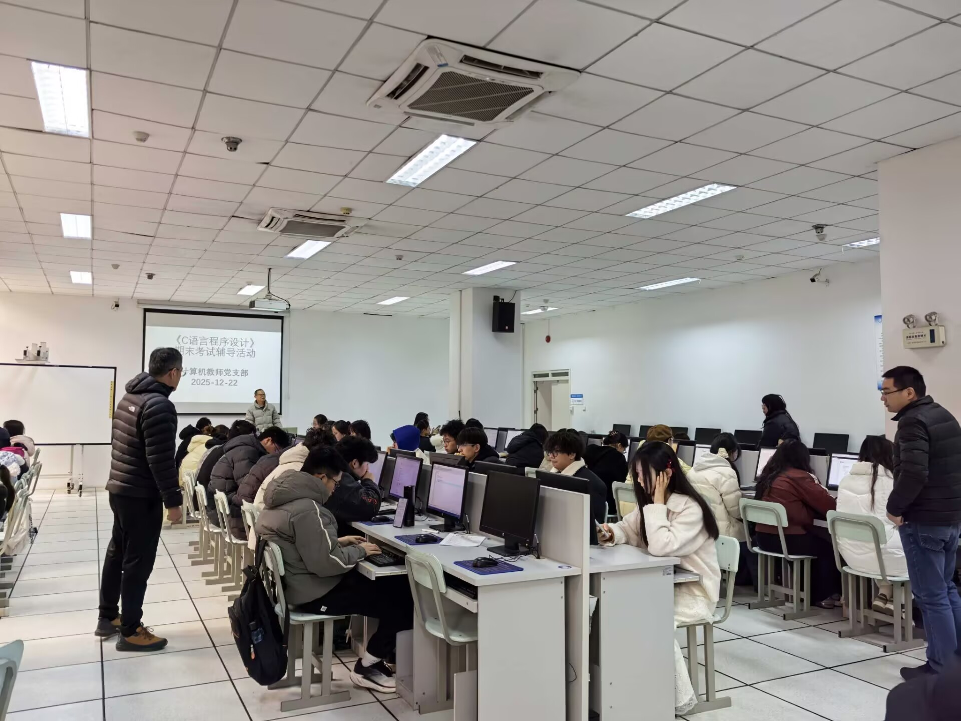 计算机教室党支部以“双创”品牌建设为抓手,针对《C 语言程序设计》课程中学生普遍反映的指针操作、循环结构、函数调用等重难点,组建由党员骨干教师牵头的辅导团队。辅导过程中,教师们不仅系统梳理课程核心知识点、易错考点,还通过典型例题解析、编程实操演示、一对一答疑解惑等方式,帮助学生理清解题思路、夯实编程基础。针对部分基础薄弱的学生,支部教师耐心制定个性化辅导方案,手把手指导代码编写与调试,有效缓解了学生的备考压力。