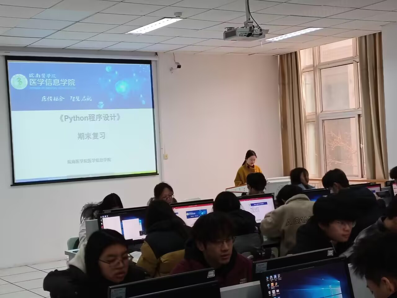 期末备考关键期,为精准破解学生学业难题、助力高效复习,医学信息学院党委以党建为引领,统筹组织教师党支部开展“一站式”社区期末学业辅导。12 月 22 日至 26 日,计算机教室党支部、医信教师党支部积极响应,分别针对《C 语言程序设计》《Python 程序设计》《射频识别技术与应用》三门课程开展专项辅导,以实际行动践行育人使命,彰显学院对学生成长成才的深切关怀。