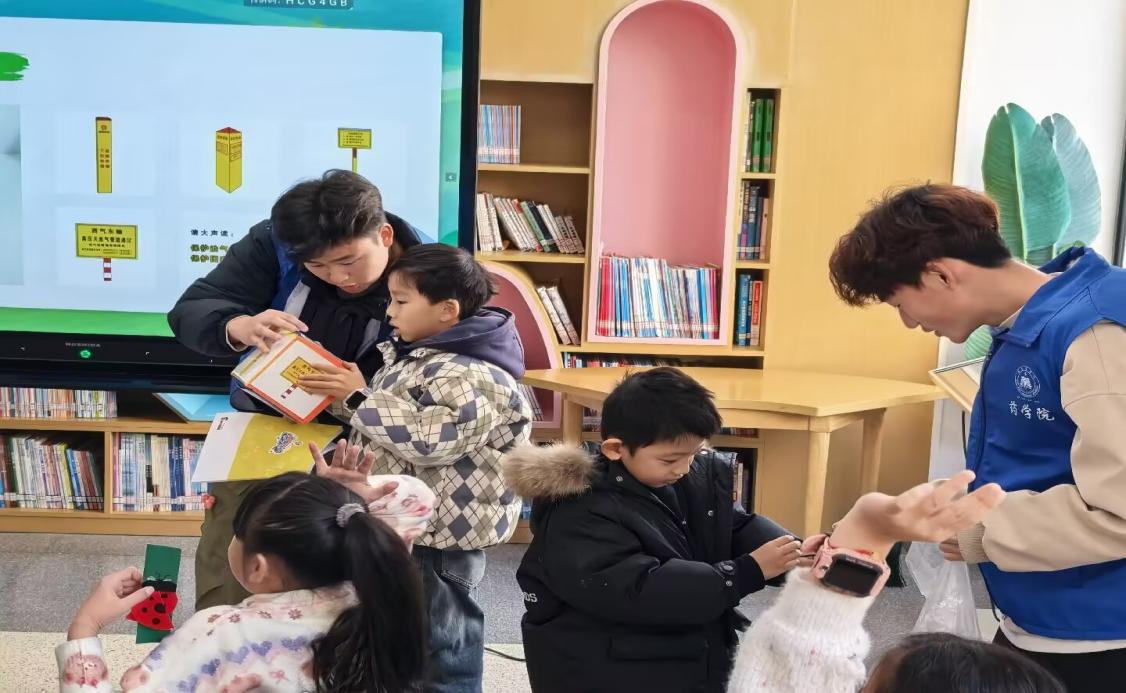 为响应国家能源安全号召,强化少年儿童能源安全意识,普及管道安全知识,12月27日,药学院本草新语志愿服务队前往弋江区白马书院,开展“国家专项管道保护宣传”活动。志愿者们以趣味科普、互动游戏与实景模拟相结合的方式,为当地的孩子们带来了一场沉浸式的管道安全知识宣讲,让专业的能源安全知识在轻松愉悦的氛围中浸润孩子们的心田。