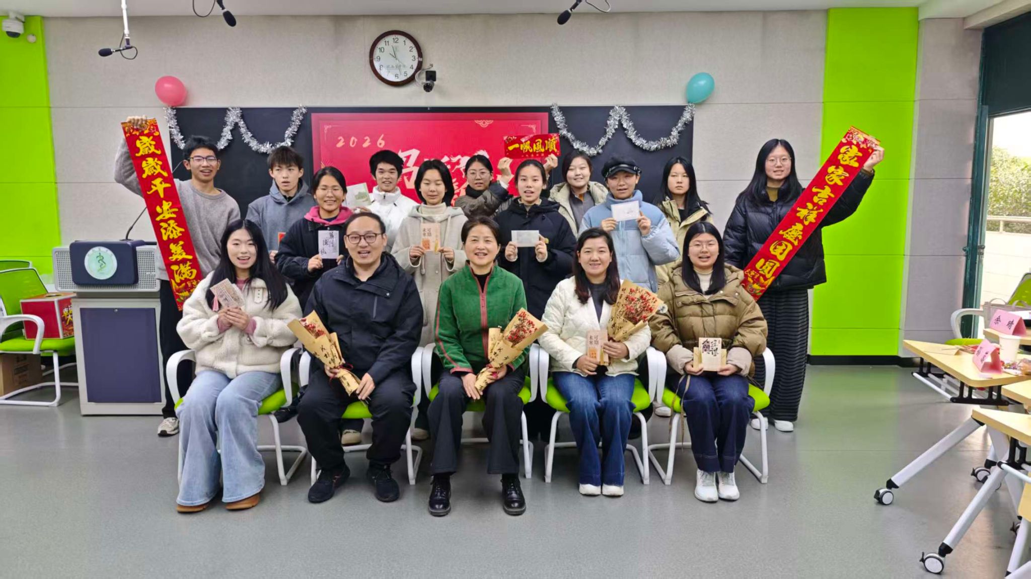 座谈会最后,同学们依次抽取满载期许的祝福卡片,“小小的行动,持续的努力,去除干扰,你人生的梦想一定会实现”“以青春为笔,以奋斗为墨,绘出属于自己的星辰大海”等真挚寄语为这场跨年之约画上圆满句号。