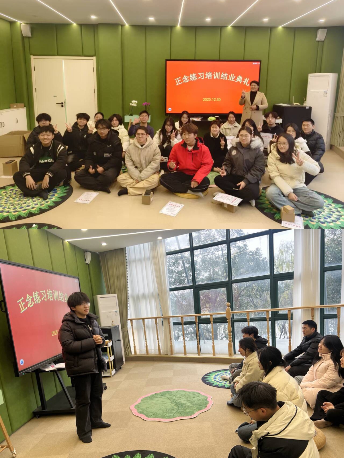 12月30日,学生处成功举办心理委员正念练习培训班结业仪式。参与本期培训的40余名心理委员齐聚一堂,共同回顾学习历程,分享成长收获,现场为优秀学员颁发了结业证书。