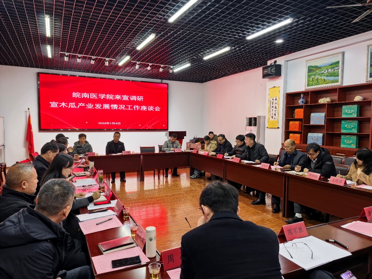 为深化校地合作,充分发挥高校服务地方产业发展、推动“产学研用”深度融合的作用,1月4日,药学院院长汪舰、科研处处长朱再满带队赴宣城市宣州区,围绕宣木瓜等道地药材产业开展专项调研。宣州区人民政府副区长汪琪、宣城市卫健委三级调研员钟良胜等参加调研活动。
