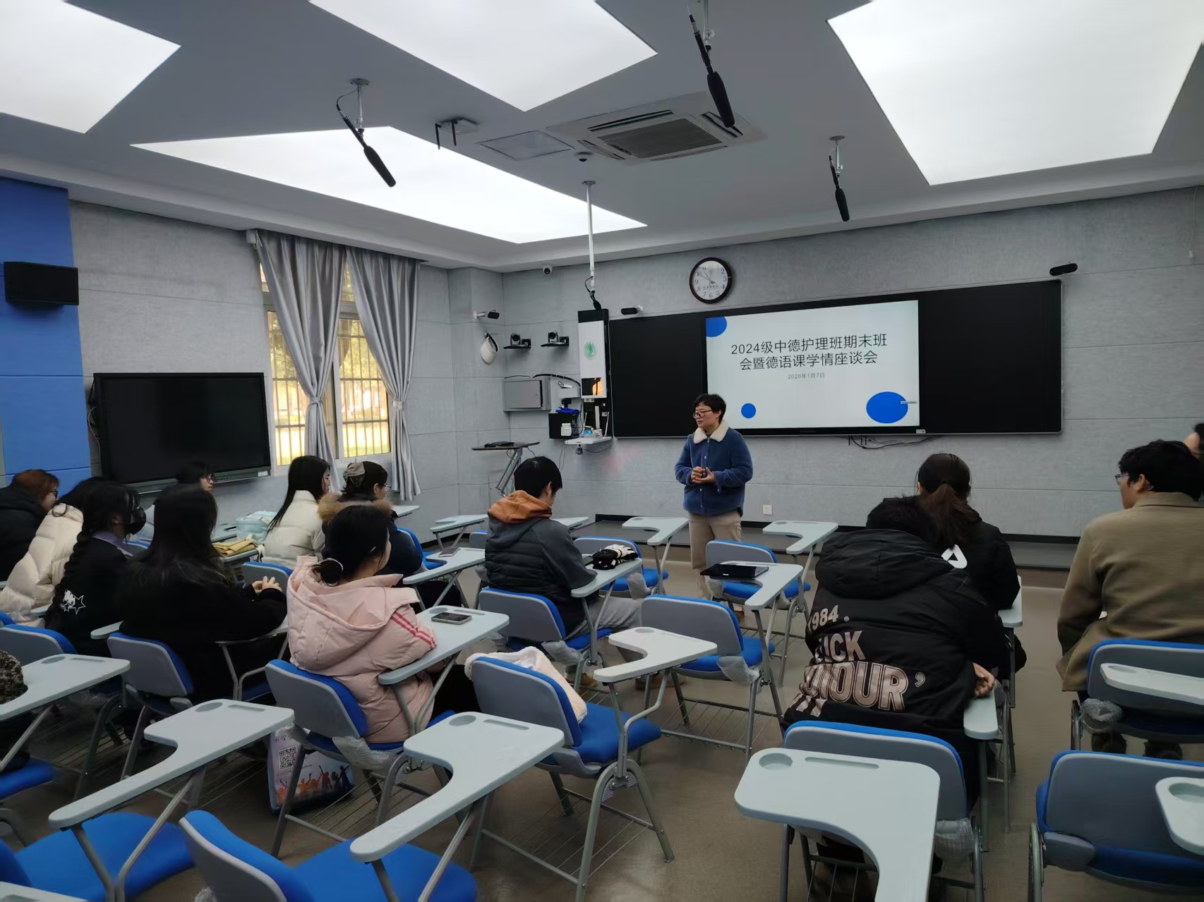 为深化中德护理人才培养质量,精准掌握学生德语学习动态,1月7日,学校召开2024级、2025级“中德护理班”期末总结暨德语课学情座谈会,国际合作与交流处副处长蒯文婷、护理学院副院长崔慧霞出席会议。